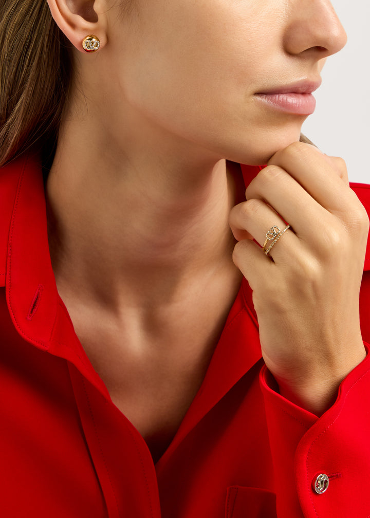 These VLogo Crystal-Embellished Stud Earrings by Valentino Garavani feature a VLogo plaque adorned with crystal embellishments, blending the brand's iconic design with modern elegance. These stud earrings are perfect for everyday sophistication.