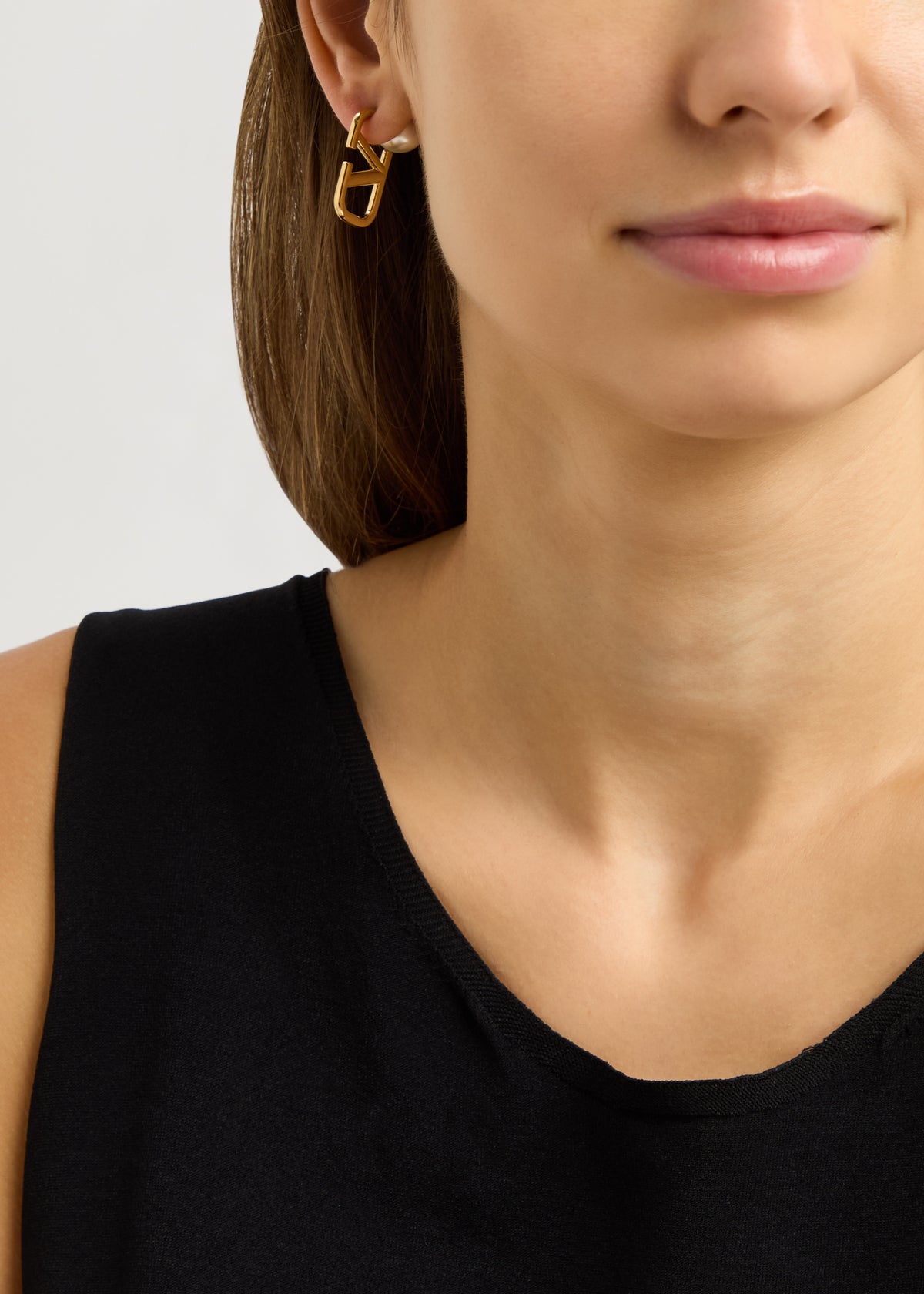 These VLogo Faux Pearl-Embellished Hoop Earrings by Valentino Garavani showcase a sleek hoop design with the VLogo and faux pearl embellishments, combining elegance with contemporary style. Ideal for a refined, statement look that captures Valentino’s chic essence.