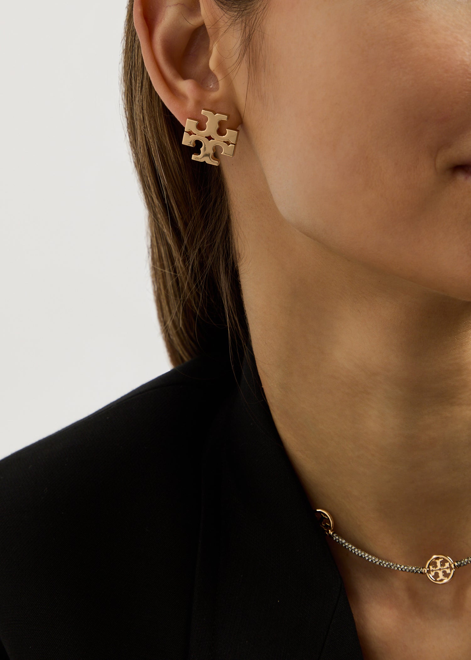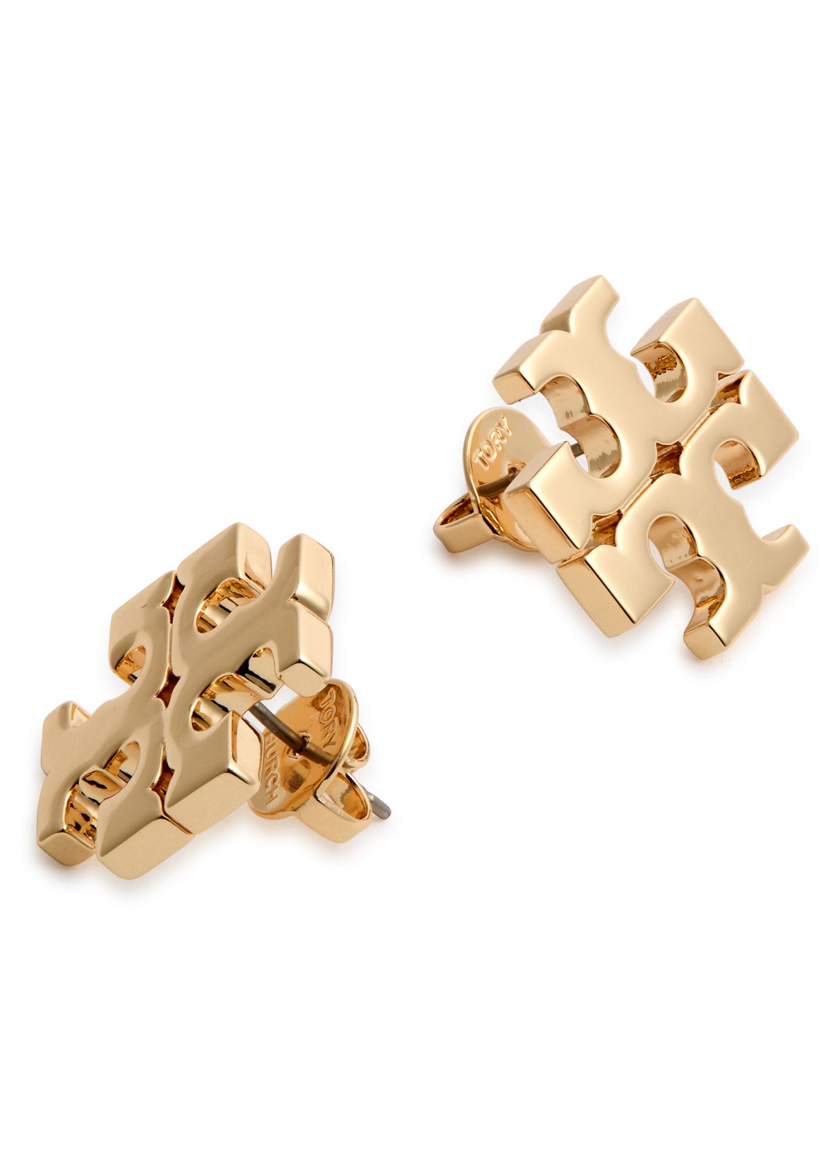 The Eleanor 18kt Gold-Plated Logo Stud Earrings by Tory Burch showcase the brand’s iconic double-T logo with refined cut-out details. These stud earrings add a touch of preppy sophistication and are perfect for everyday wear.