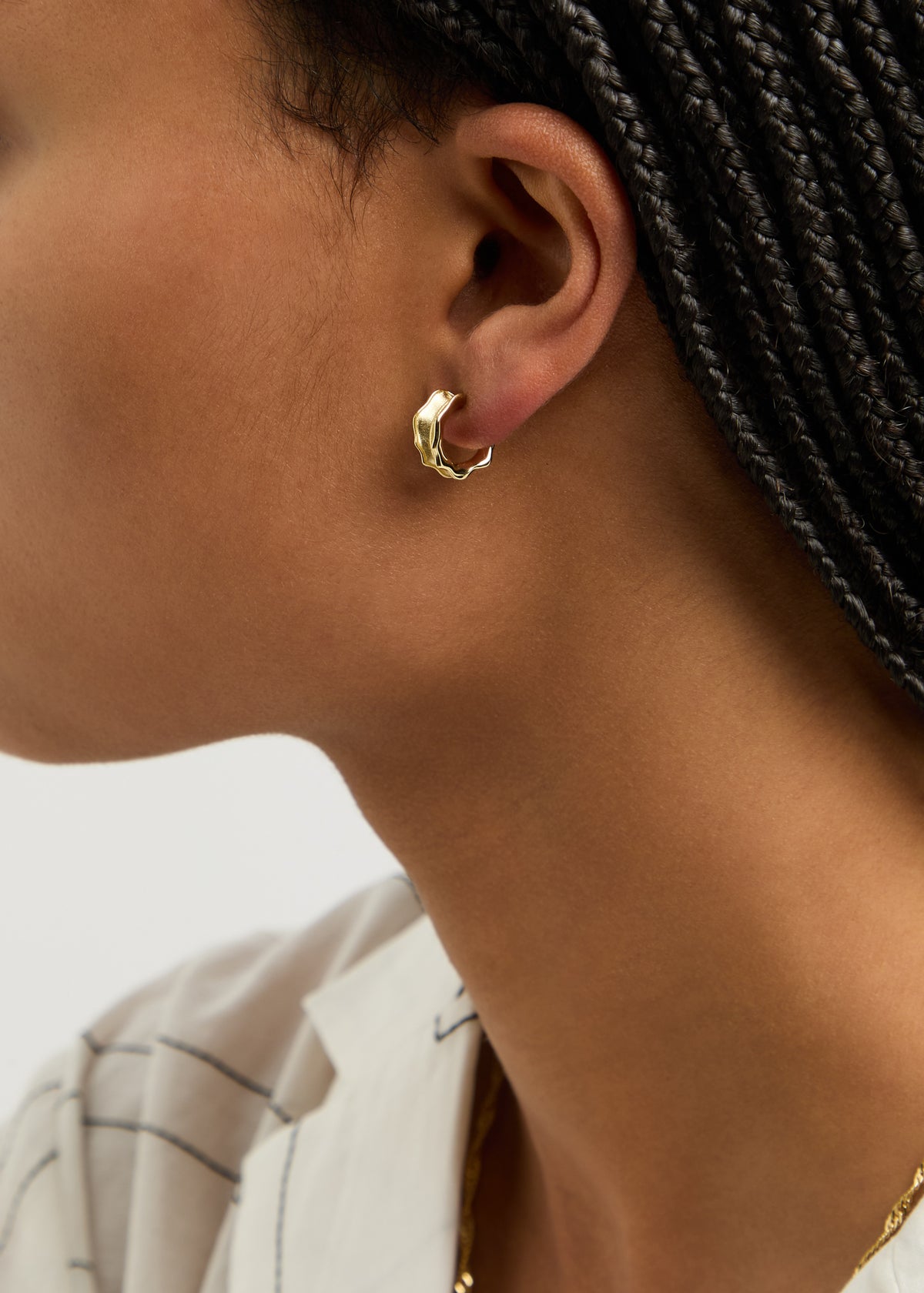 18kt gold-plated on recycled sterling silver with a sculpted wavy design, butterfly fastening for pierced ears, drop length: 1 cm.