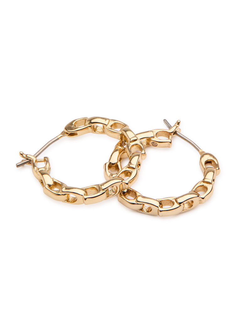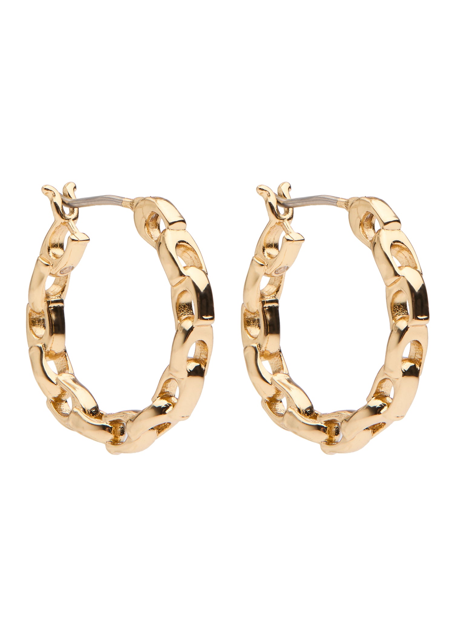 These Logo-chain hoop earrings by Coach are a testament to the brand’s blend of classic style and modern design. Featuring a sleek logo chain motif, these hoops bring effortless sophistication to any look, making them an elegant choice for everyday wear or special occasions.