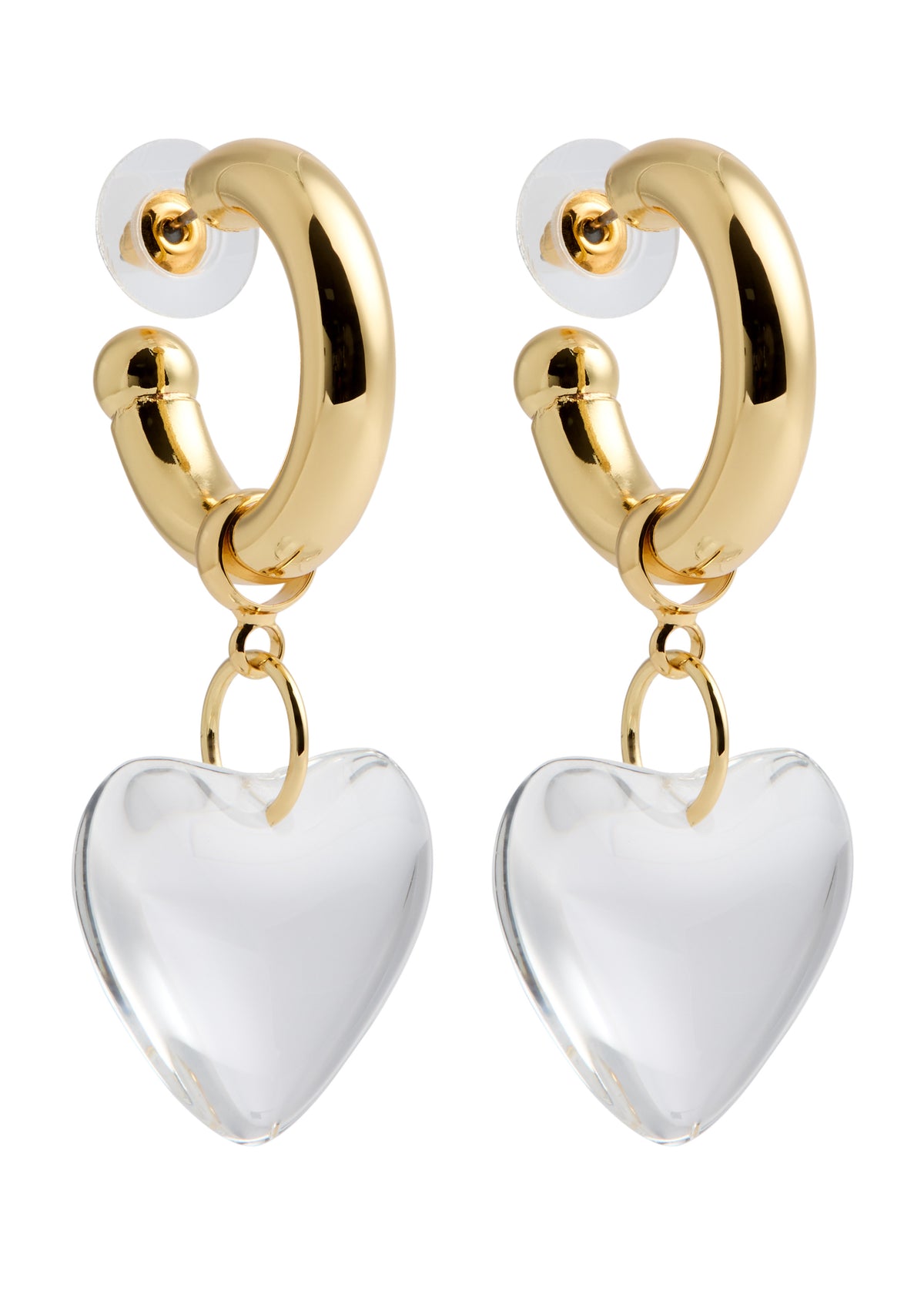 Constructed with high-quality metal and a heart pendant. Drop length: 5.5cm. Post fastening for pierced ears.