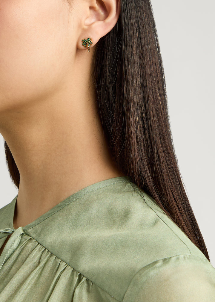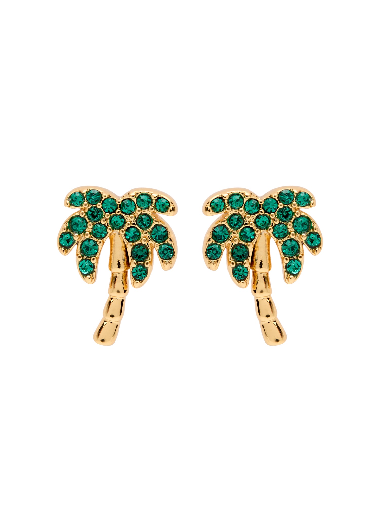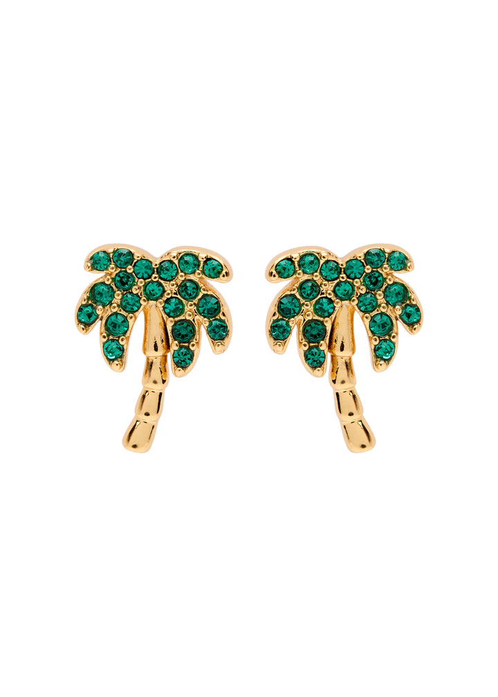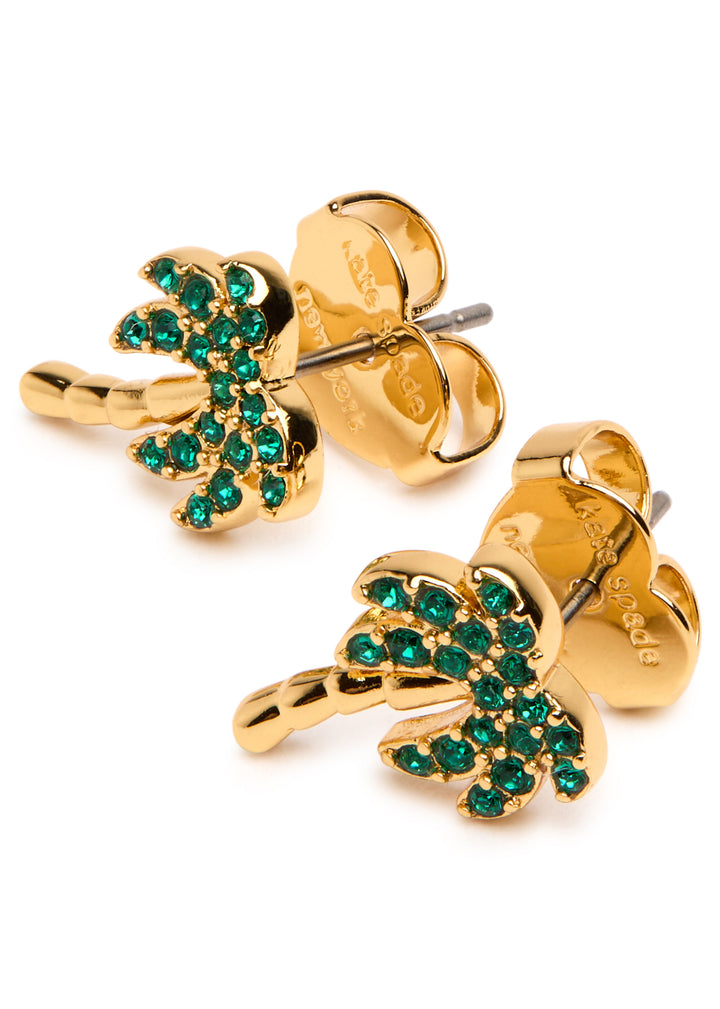 These Away We Go crystal-embellished stud earrings by Kate Spade New York feature a playful palm tree design with sparkling crystal accents, embodying the brand’s fun, sophisticated style. Perfect for adding a tropical flair to any look, these studs are both charming and versatile.
