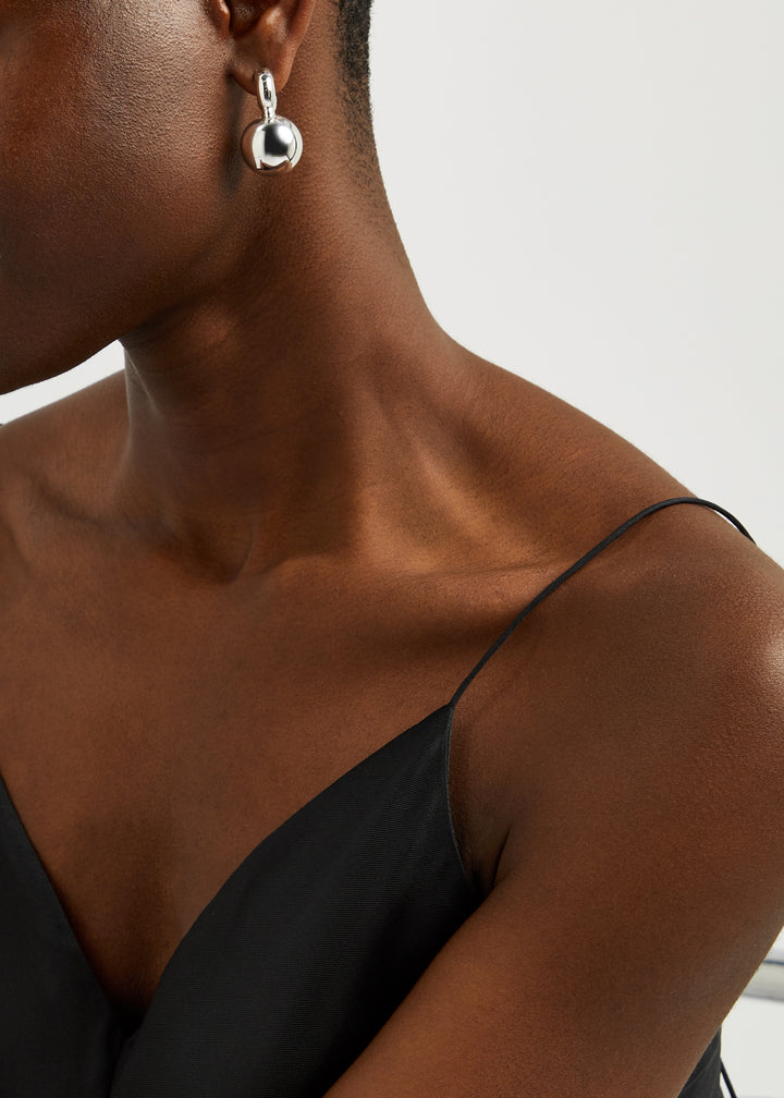 These Lyra silver-dipped hoop earrings by Jenny Bird showcase the brand’s modern, sculptural aesthetic with a designer-engraved ball pendant. Ideal for adding a bold, sophisticated touch to any outfit, these hoops reflect Jenny Bird’s focus on statement pieces that combine elegance with versatility.
