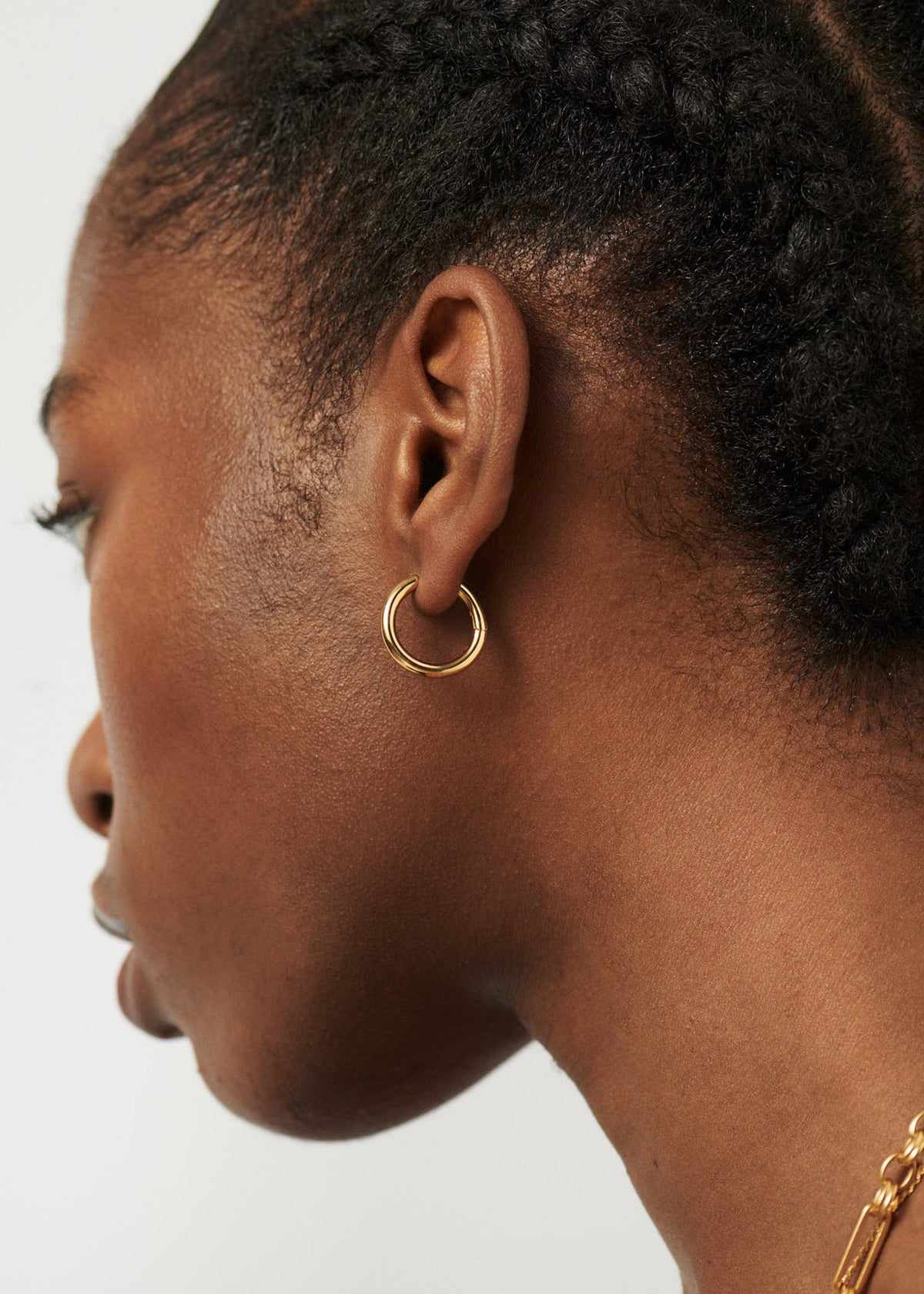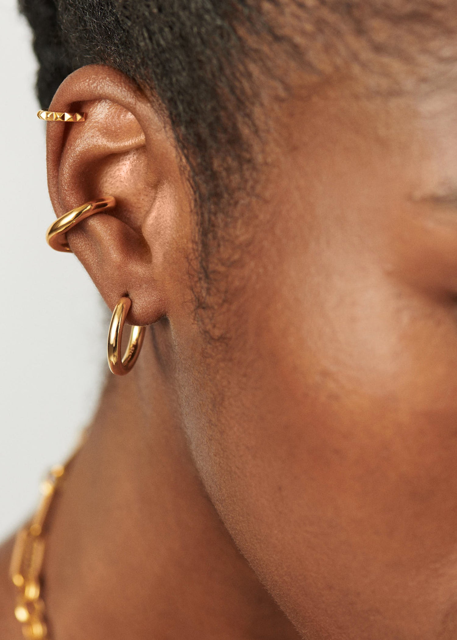 These Tunnel medium 18kt gold-plated hoop earrings by Missoma are the epitome of modern, everyday luxury. Crafted from recycled gold-plated metal, they showcase the brand’s commitment to sustainable and ethical craftsmanship. Their medium size and sleek design make them perfect for layering with other earrings or wearing solo for a chic statement.