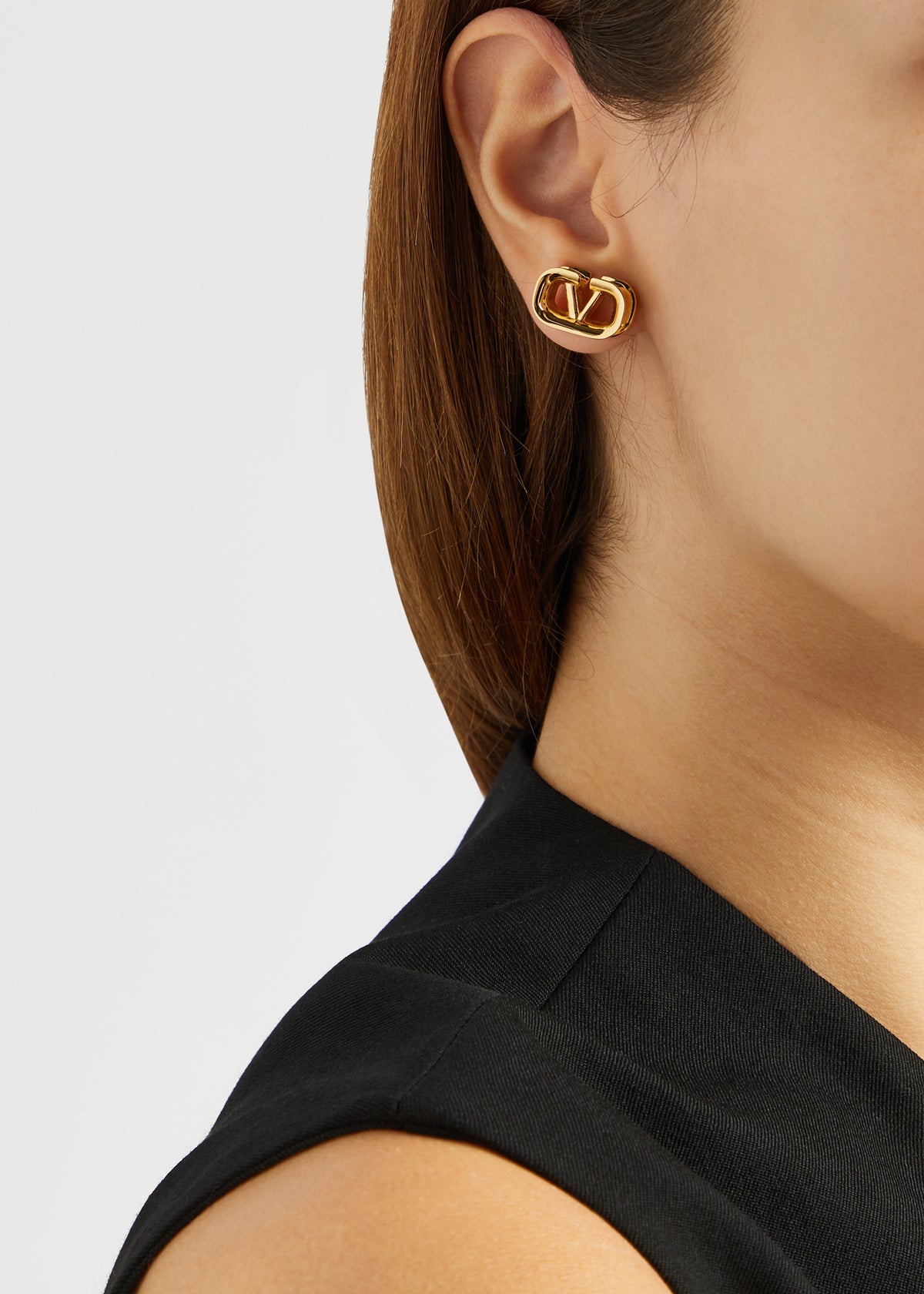 Crafted from high-quality materials, featuring a signature VLogo design with VLogo plaque at the back. Post-fastening for pierced ears. Dimensions: 1.5cm x 1cm. Presented in a designer-stamped box.