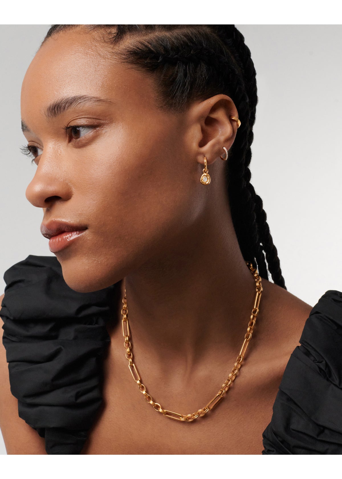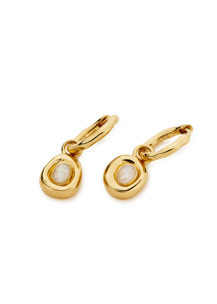 These Molten 18kt Gold-Plated Vermeil Hoop Earrings by Missoma offer a sculptural, contemporary look, with the beauty of rainbow moonstone adding a unique, iridescent glow. Perfect for both day and evening wear, the design evokes molten elegance, with soft, organic curves. These hoops are a versatile, understated statement piece, ideal for layering or wearing on their own.