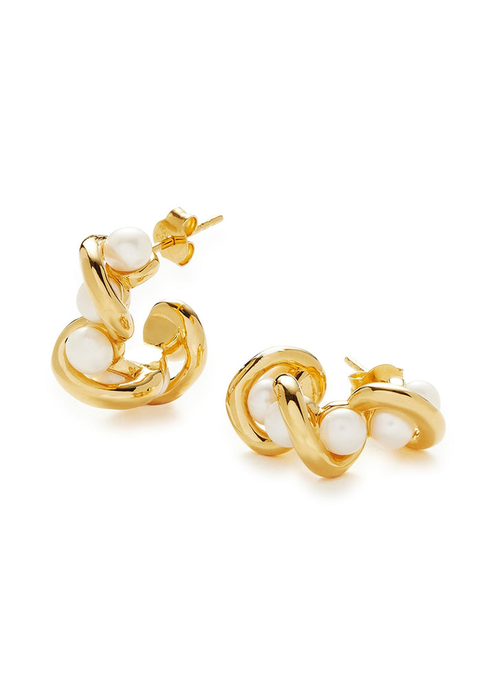 Crafted in 18kt gold-plated brass with twisted design and freshwater pearl embellishments. Post fastening for pierced ears. Dimensions: 2cm x 1.8cm.
