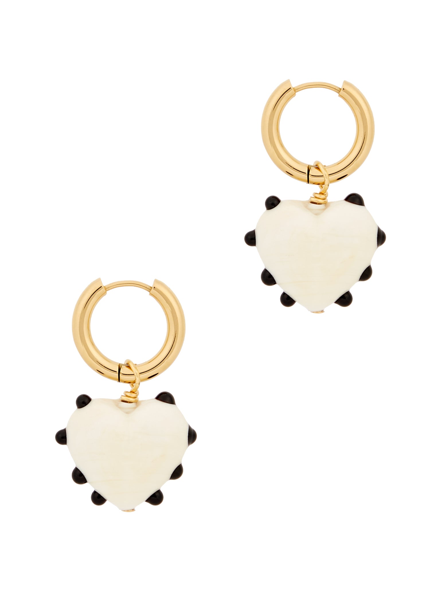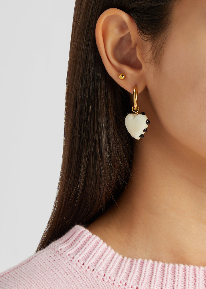 18kt gold-plated hoop earrings with detachable glass heart charm. Bead embellishments. Sleeper fastening for pierced ears. Presented in a designer-stamped pouch. Hoop dimensions: 1.7cm x 1.7cm. Heart dimensions: 1.8cm x 3.3cm.