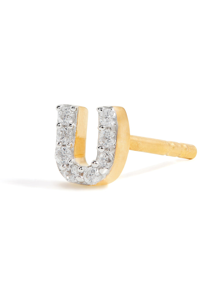 This U Initial 18kt Gold-Plated Single Stud Earring by Missoma offers understated elegance with a personal twist. Featuring pavé cubic zirconia, it adds a refined sparkle to any look. The 18kt gold-plated finish enhances its luxury appeal, making it the perfect piece for layering or wearing solo. A versatile and timeless addition to your collection, ideal for everyday wear.