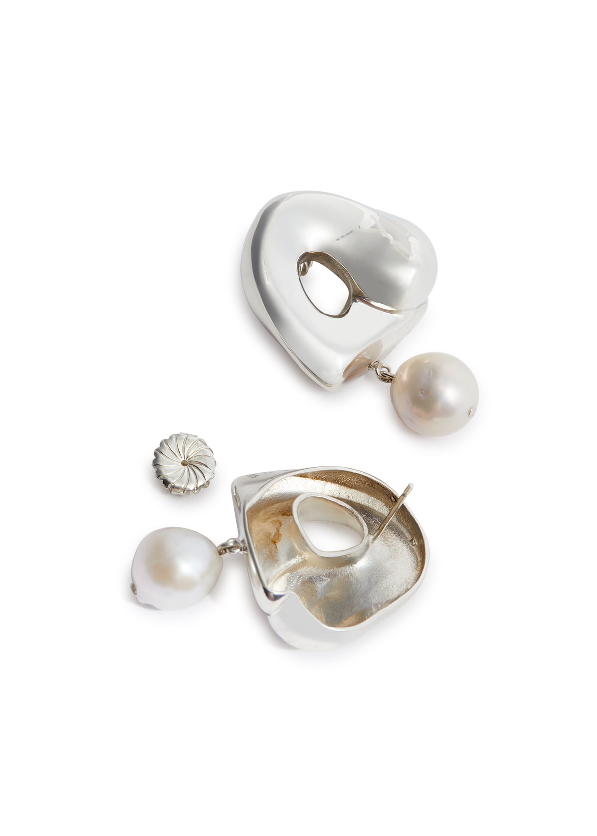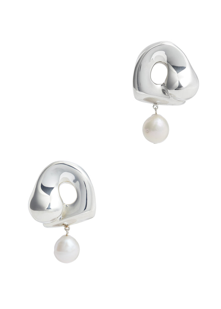 These X Simone Bodmer-Turner Sandra large sterling silver drop earrings by Agmes are a captivating collaboration that blends organic form with modern design. The sculpted sterling silver features a unique cutout detail, creating an interplay of light and shadow, while the delicate freshwater pearl charm adds a touch of classic beauty. These earrings are an artistic statement, perfect for someone who seeks a piece that is both luxurious and thoughtfully designed.