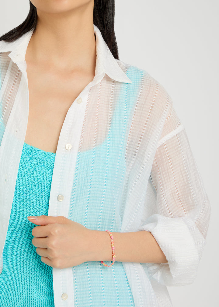 This bracelet is handmade from 18kt gold-plated metal and features floral glass bead embellishments. It has an adjustable lobster-clasp fastening with a minimum length of 16cm and a maximum length of 18.5cm.