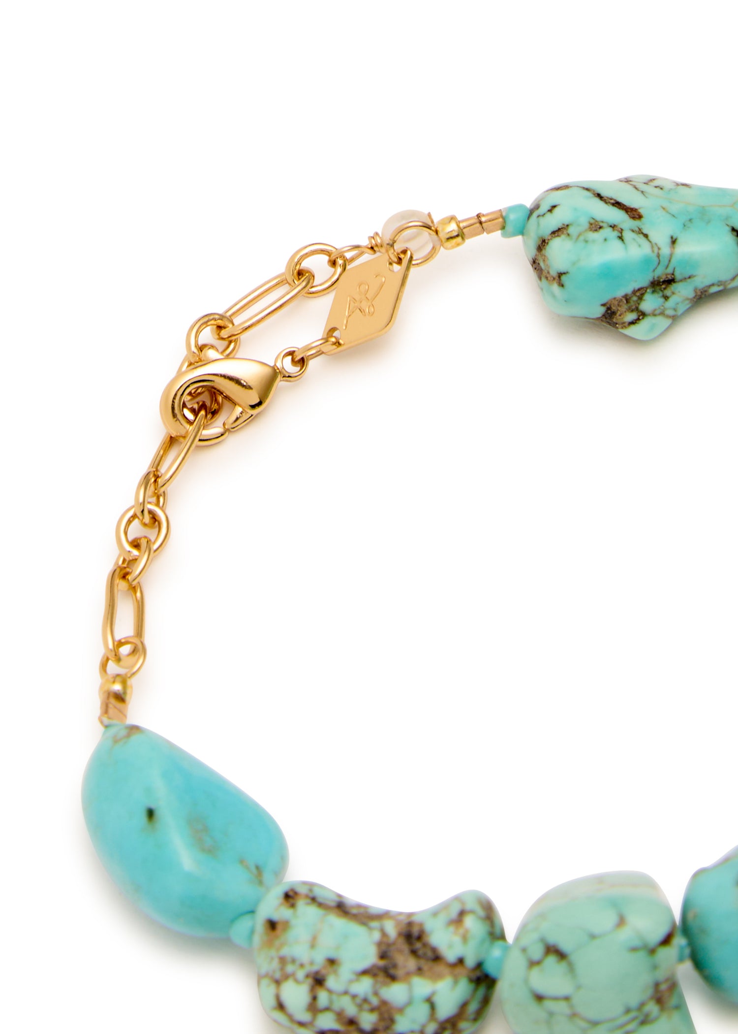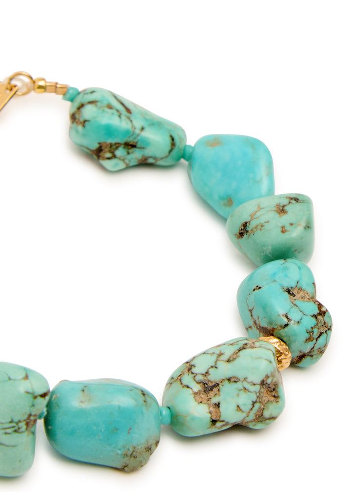 This bracelet is handmade from 18kt gold-plated metal and features turquoise beads. It has an adjustable lobster-clasp fastening with a minimum length of 17cm and a maximum length of 20cm.