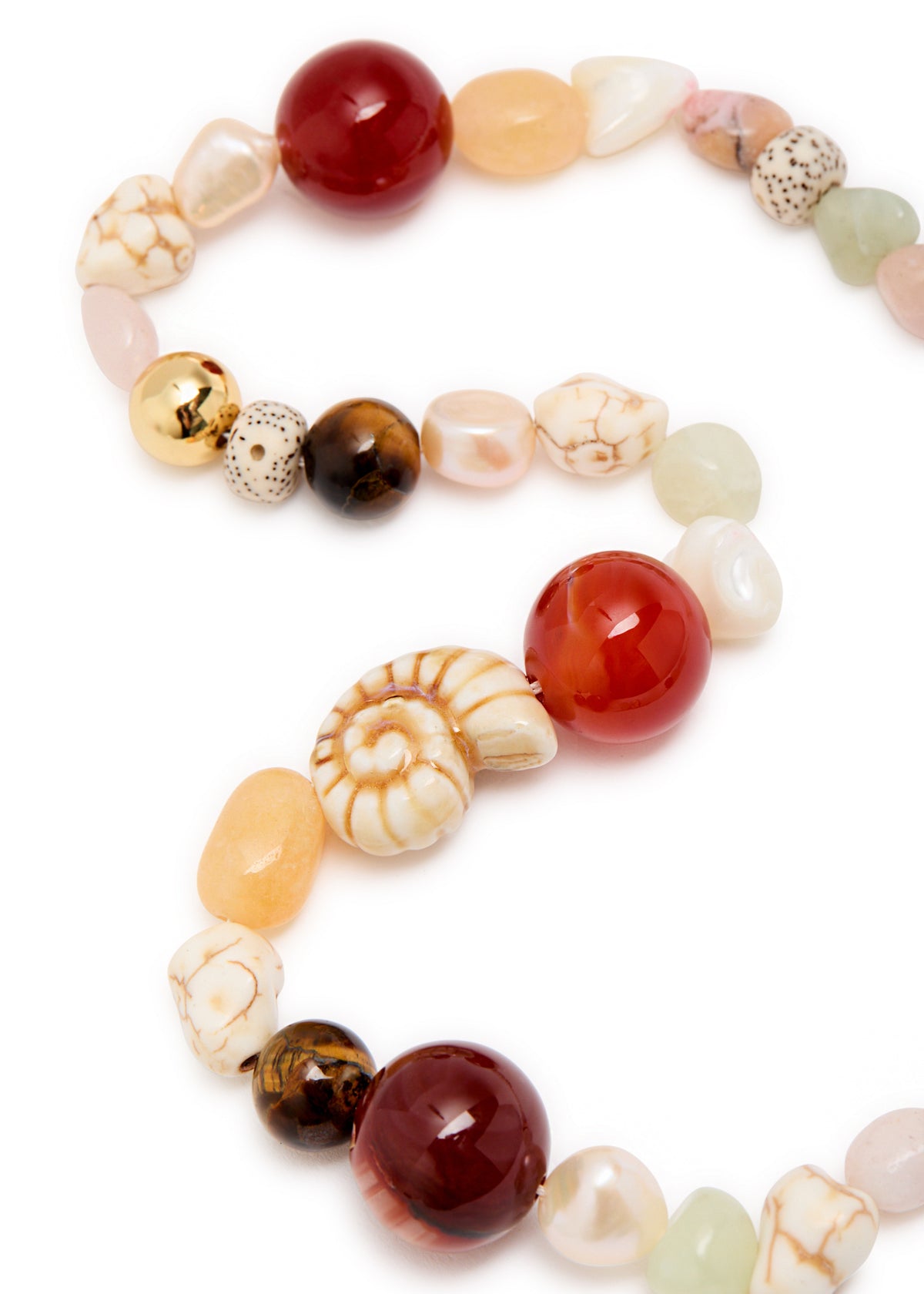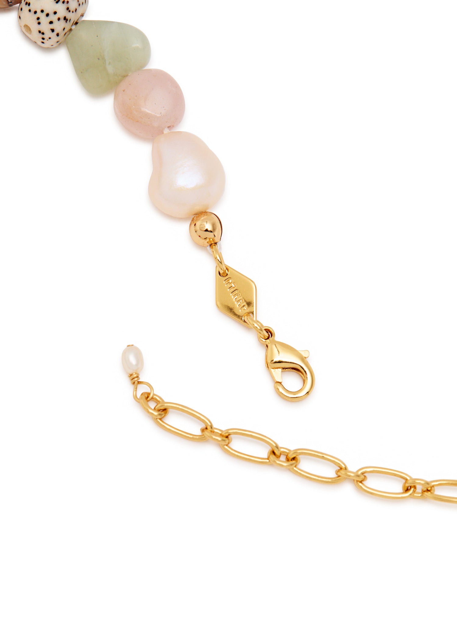 This necklace is handmade from 18kt gold-plated metal and features stone and freshwater pearl embellishments. It has an adjustable lobster-clasp fastening with a minimum length of 39.5cm and a maximum length of 44cm.
