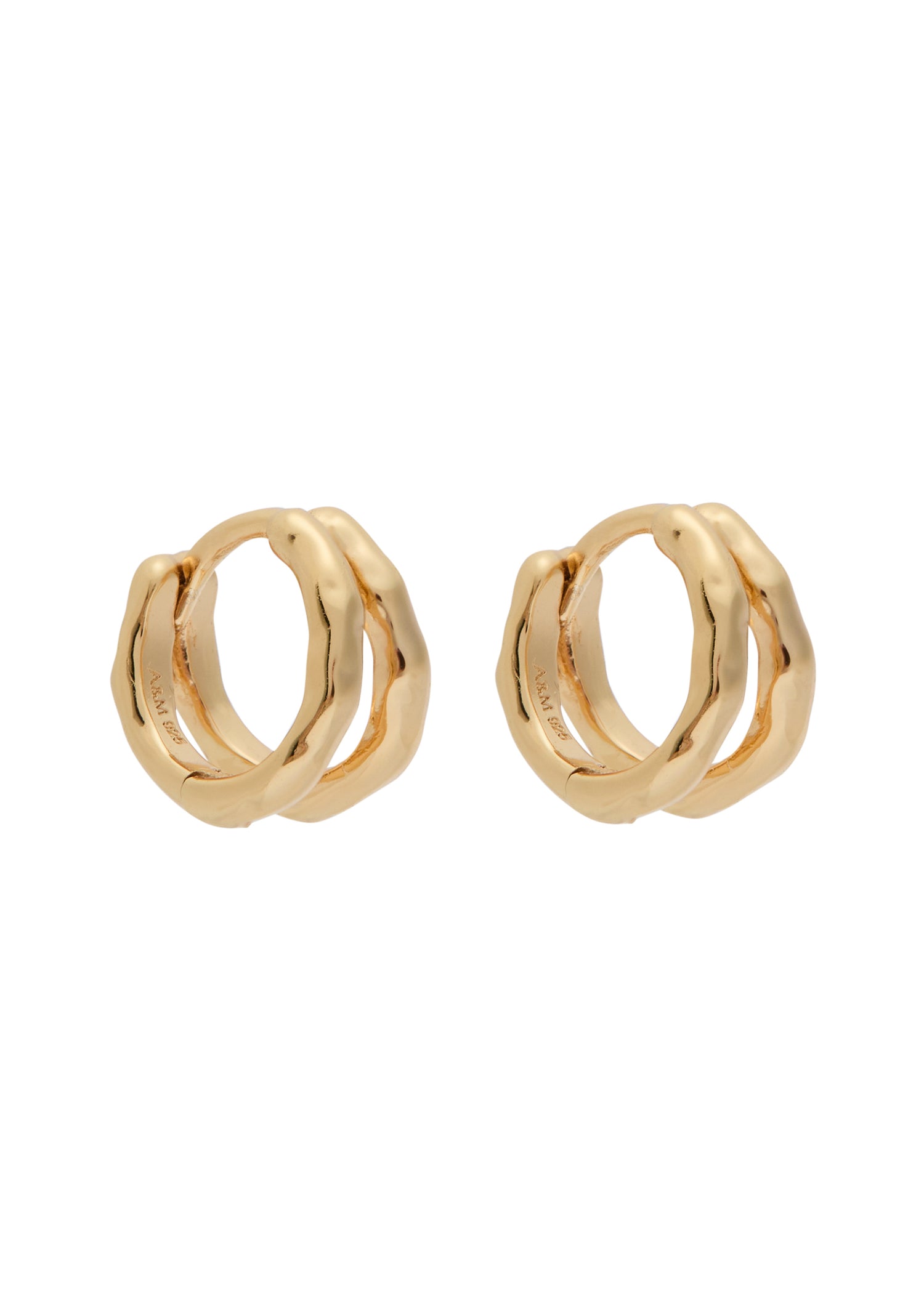 These hoop earrings are crafted from 18kt gold-plated recycled sterling silver with a double hoop design and a hammered finish. They have a sleeper fastening and a 1cm drop.