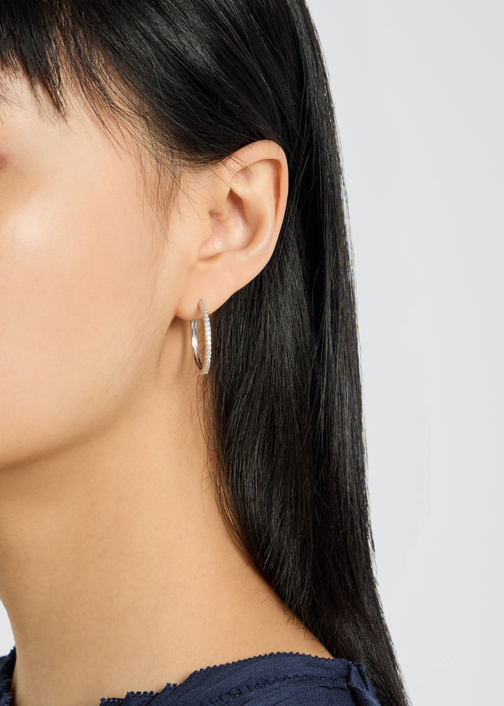 These large hoop earrings are crafted from recycled sterling silver and feature cubic zirconia crystal embellishments. They have a sleeper fastening and a 2.5cm drop.