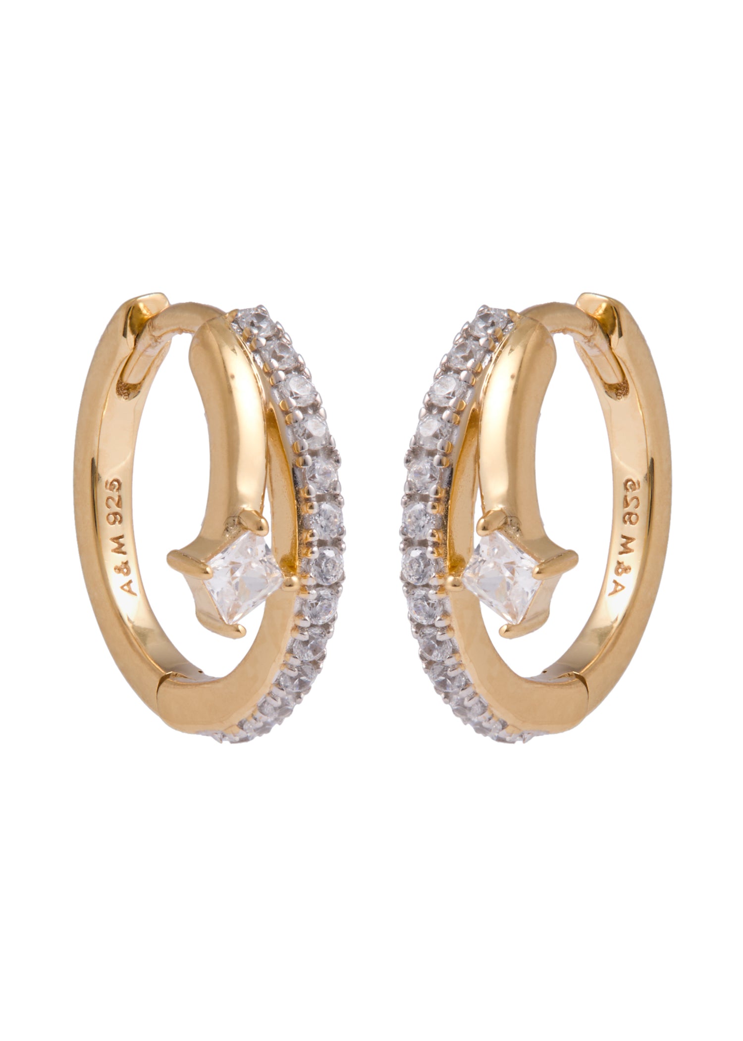 These hoop earrings are crafted from 18kt gold-plated recycled sterling silver and feature crystal embellishments. They have a sleeper fastening and a 1cm drop.