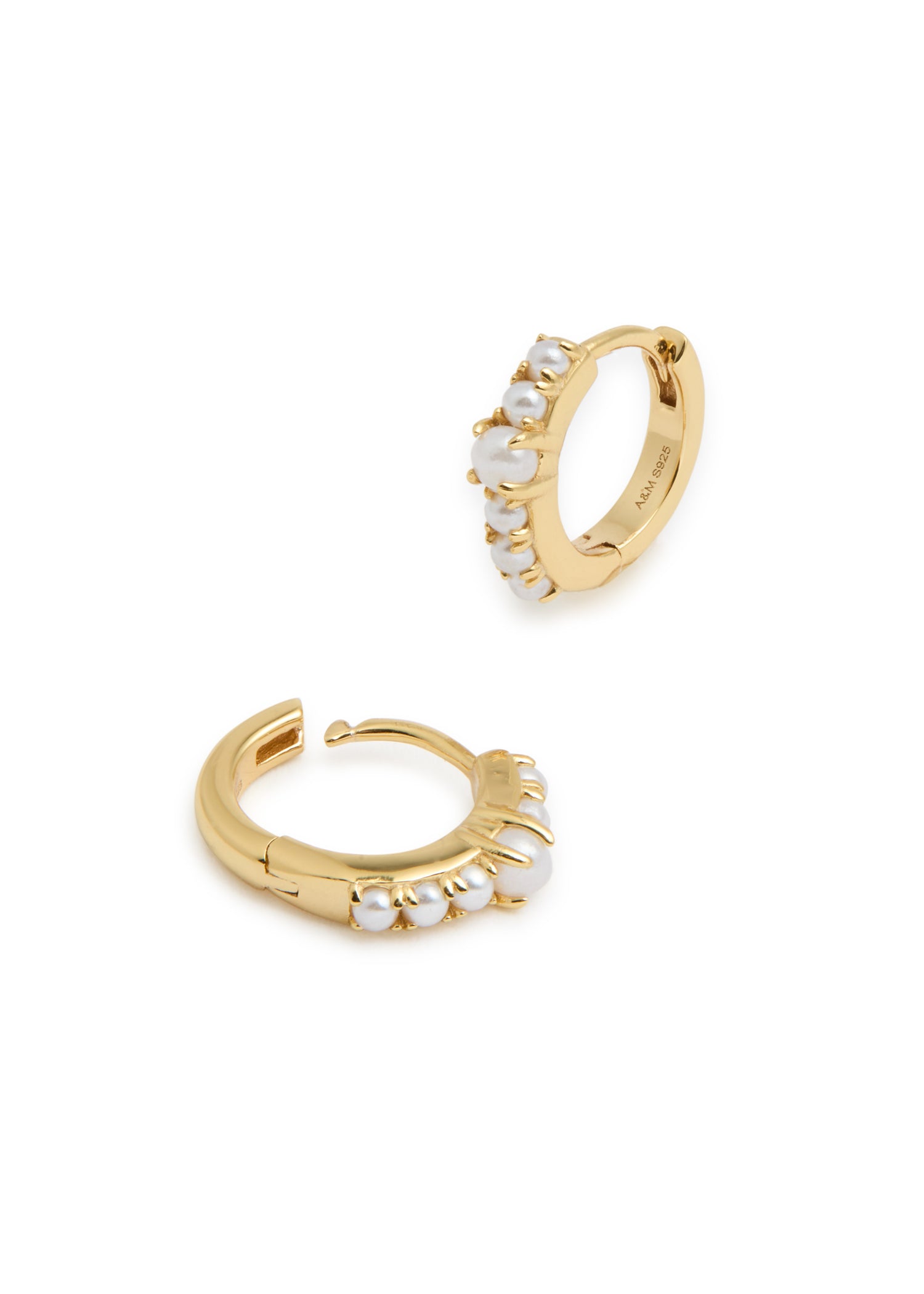 These hoop earrings are crafted from 18kt gold-plated recycled sterling silver and feature faux pearl embellishments. They have a sleeper fastening and a 1cm drop.