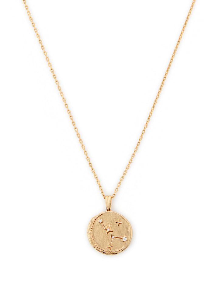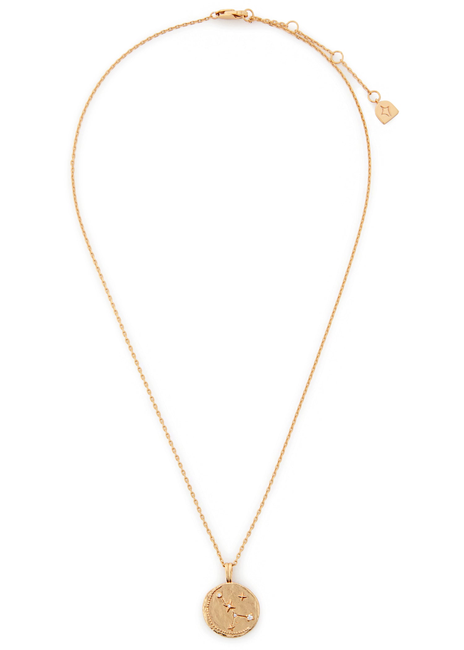 This necklace is crafted from 18kt gold-plated sterling silver with a textured, hammered finish. It features a Cancer-engraved design and crystal embellishments. It has an adjustable lobster-clasp fastening and a length of 42cm.