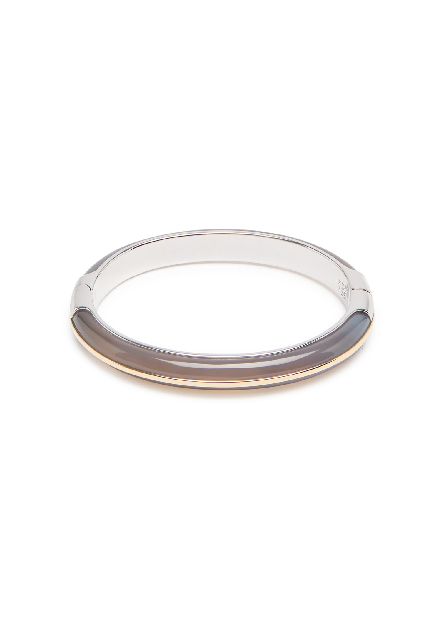 This handmade bracelet is crafted from agate and features 14kt gold and sterling silver hardware. It has a push-clasp fastening, a size small inner circumference of 16.5cm, and a width of 0.8cm.