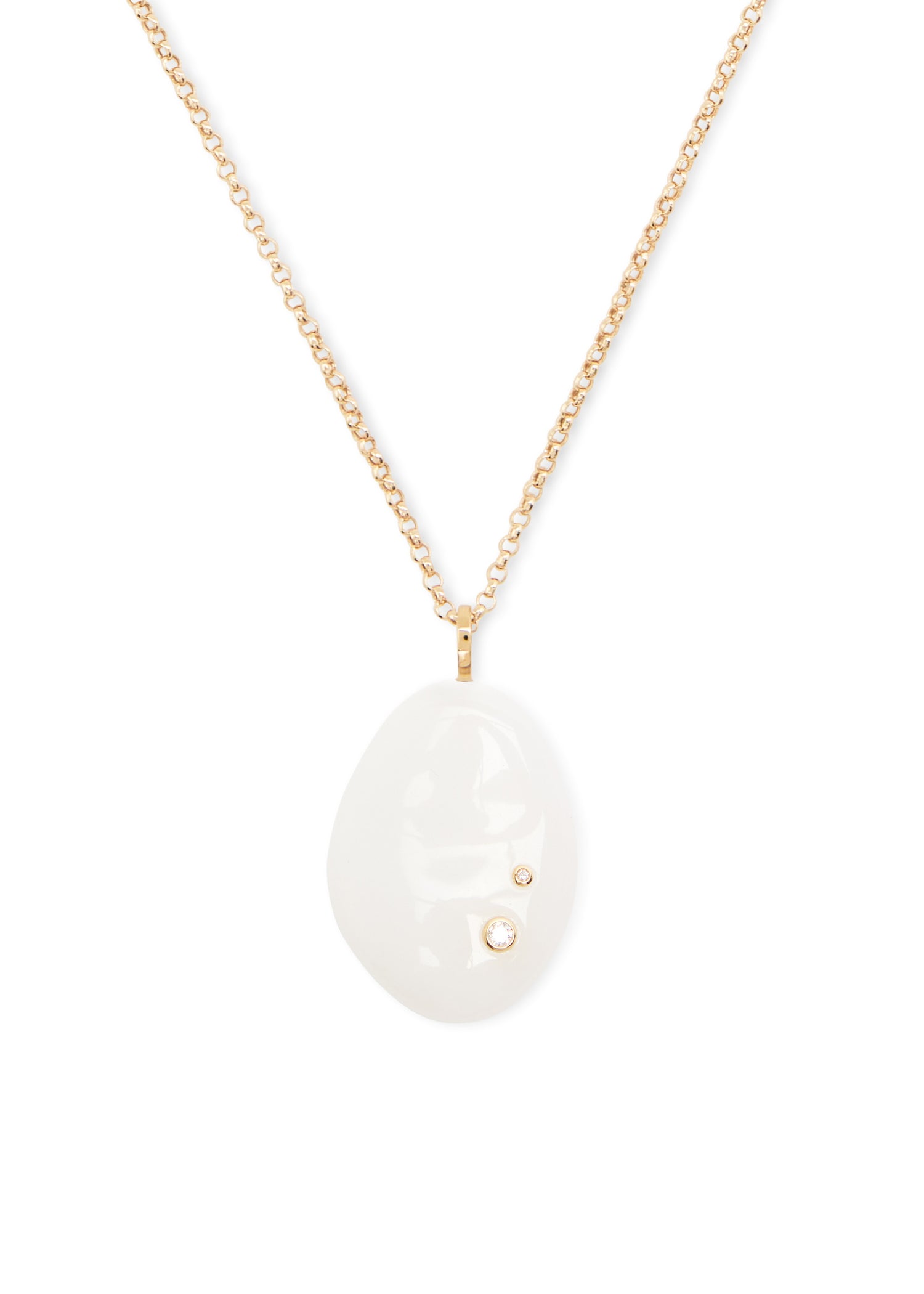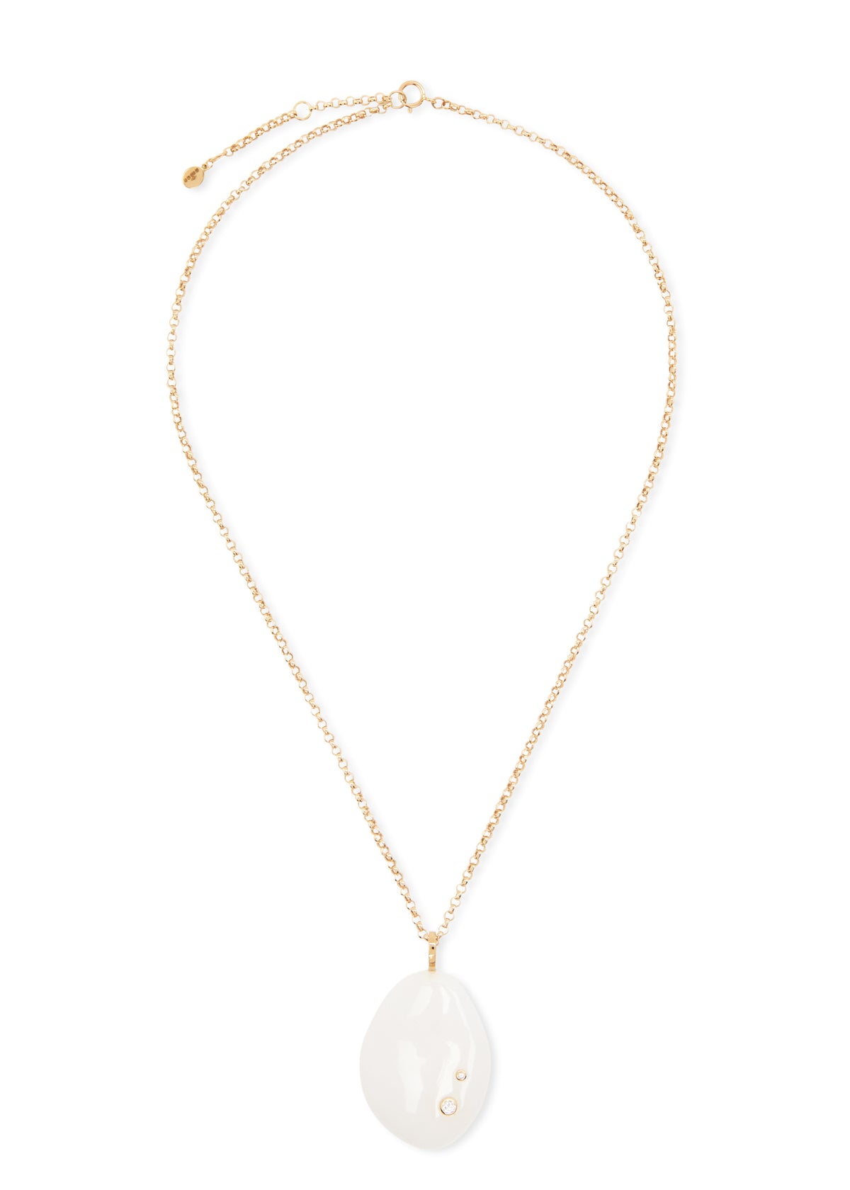 This handmade necklace is crafted from 14kt gold and features a White Jasper pendant with a crystal embellishment. It has an adjustable lobster-clasp fastening and a length of 45cm.