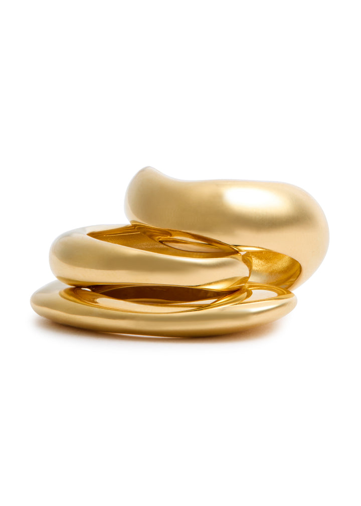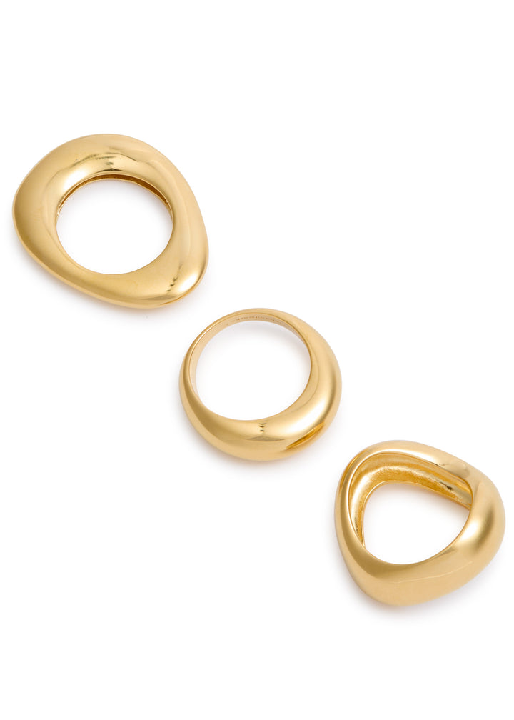 This set of three hand-finished rings is crafted from 14kt gold-plated metal with a sculpted design.