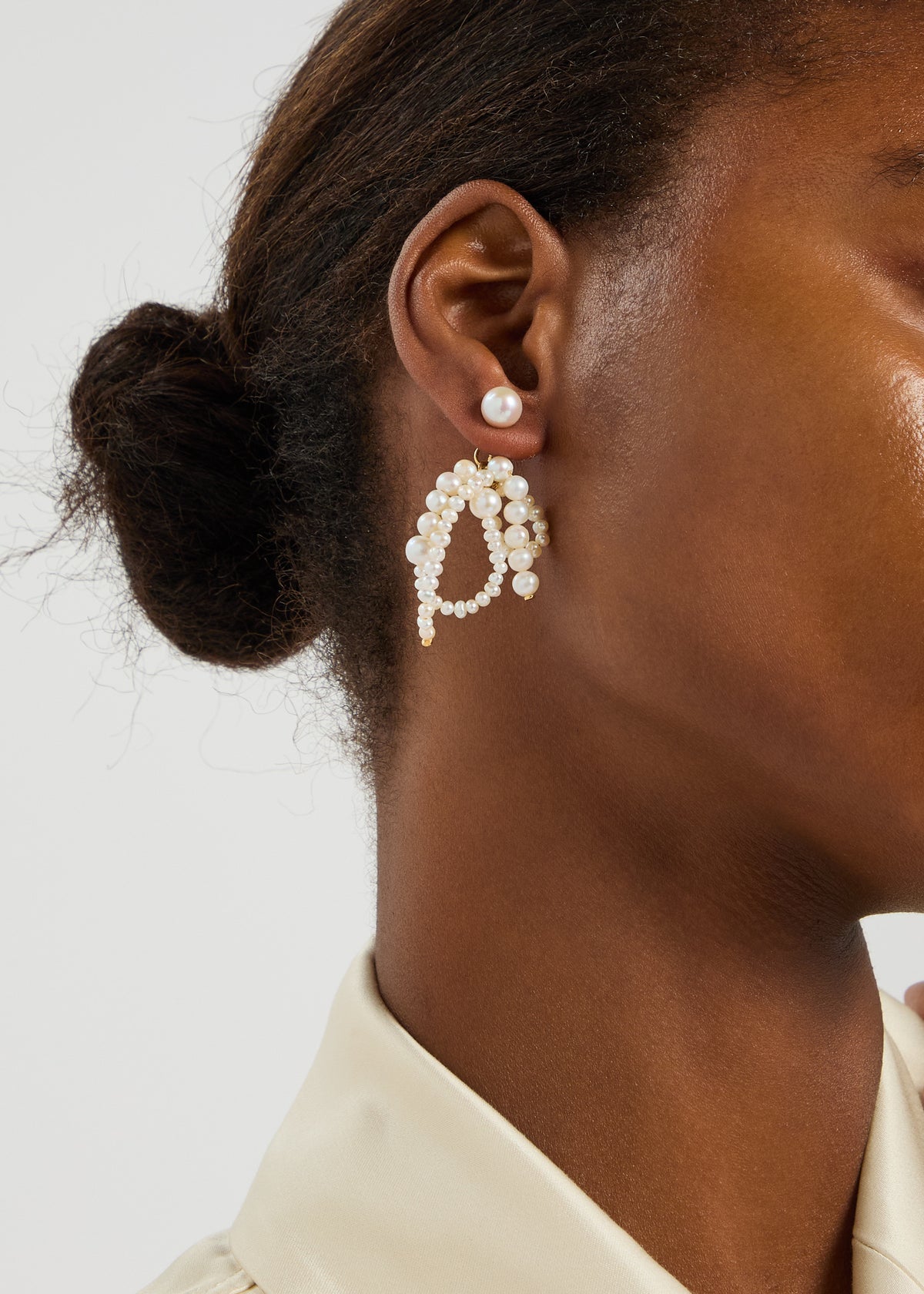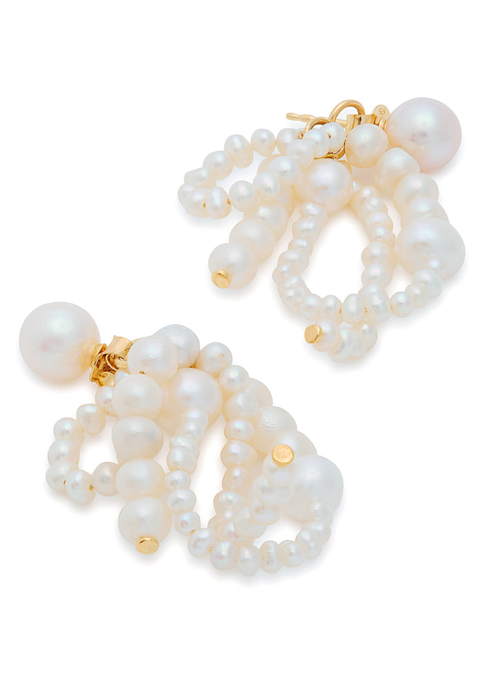 These hand-finished drop earrings are crafted from 18kt gold vermeil and feature freshwater pearl embellishments in a clustered design. They have a butterfly fastening and a 3.7cm drop.