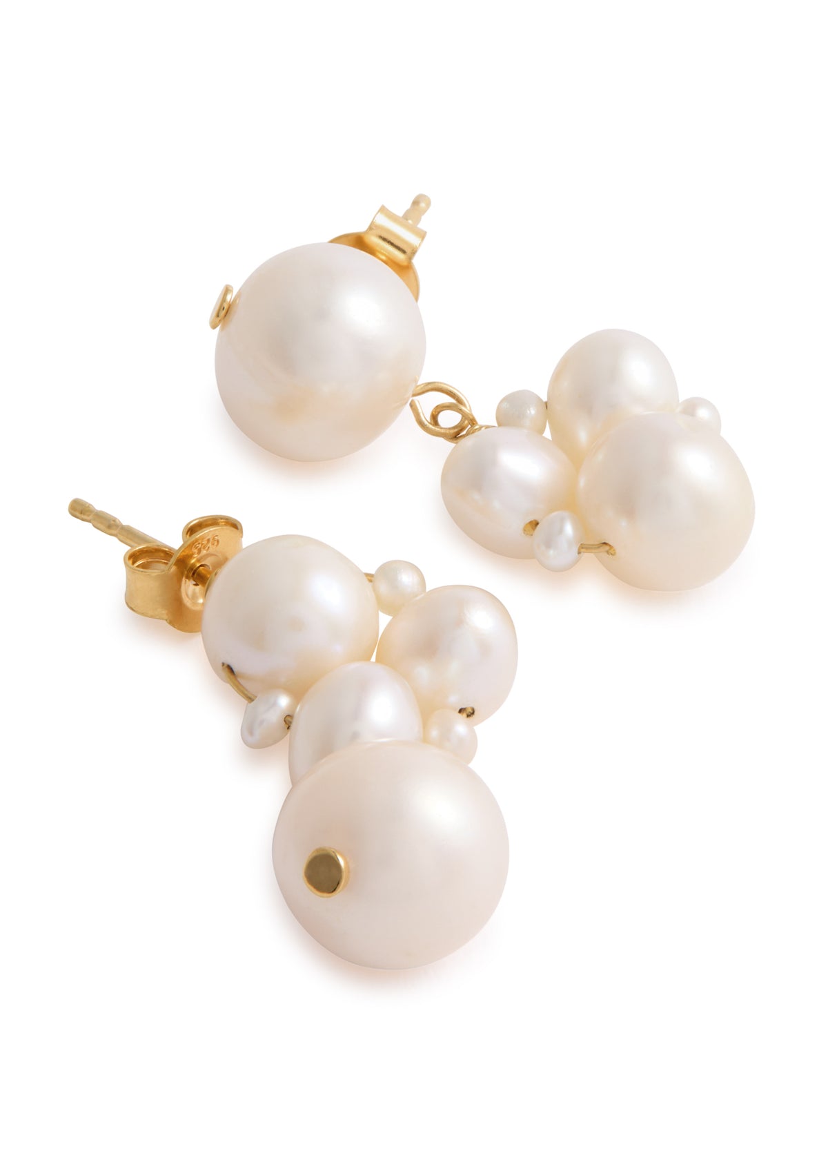 Asymmetric pearl 18kt gold vermeil drop earrings