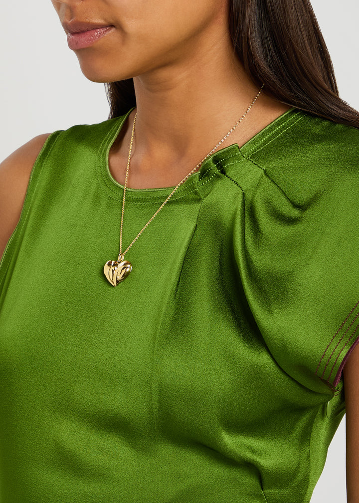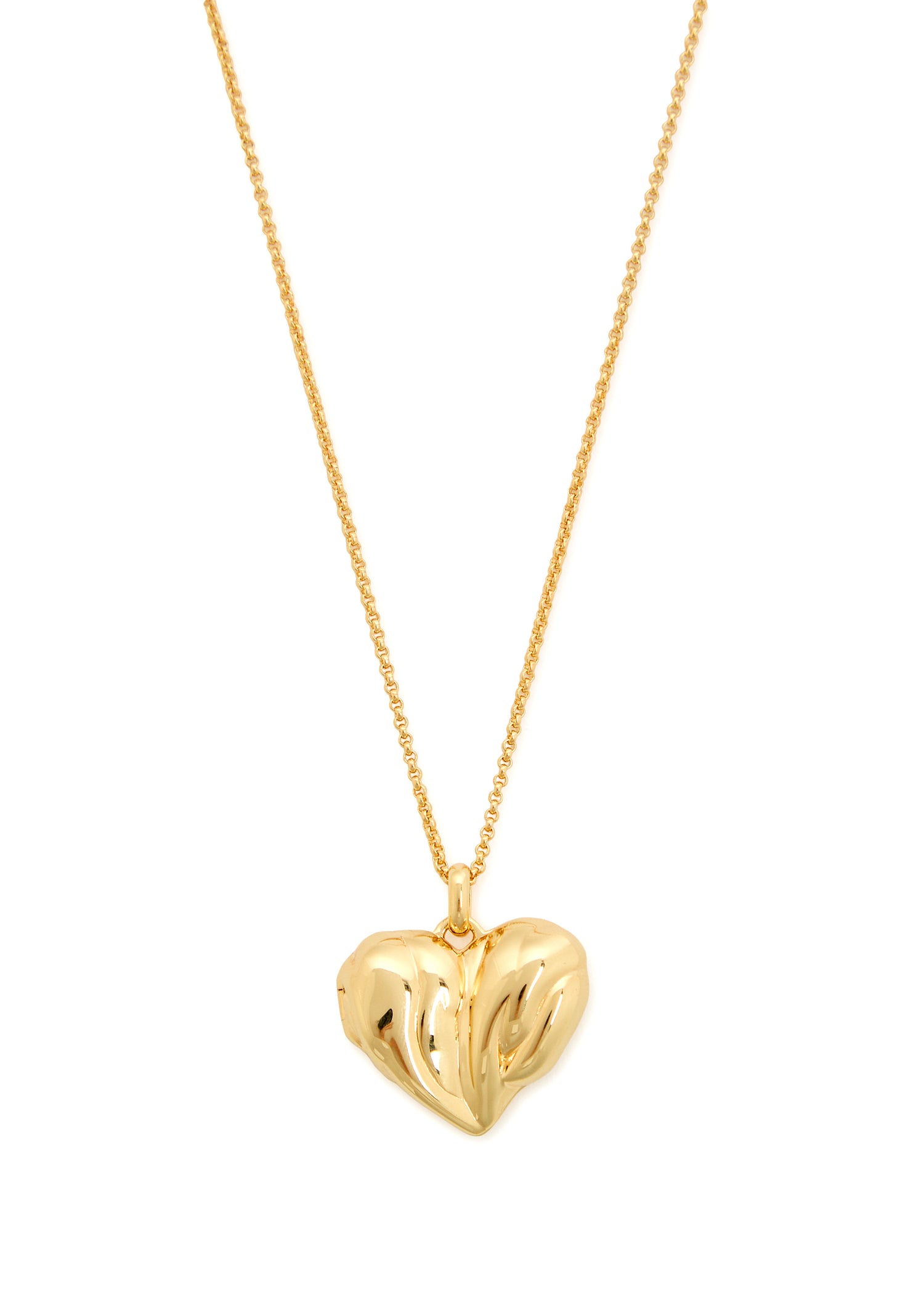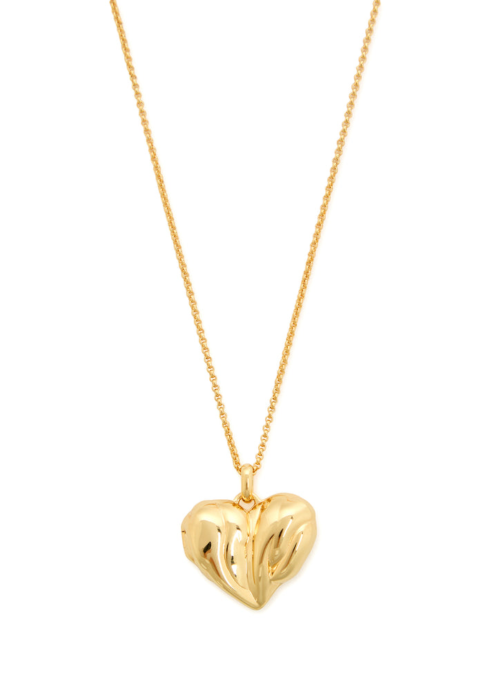 This hand-finished necklace is crafted from 18kt gold-plated sterling silver. It features a sculpted heart-shaped locket pendant with a hinge fastening. It has an adjustable hook fastening with a length between 45cm and 50cm. The pendant measures 2.5cm x 2.2cm.