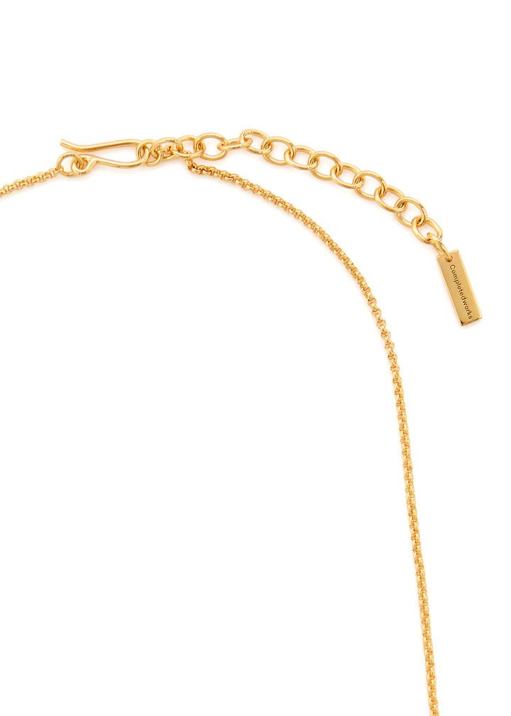 This Heart 18kt gold-plated locket necklace by Completedworks is a charming and personal piece. The beautifully sculpted, heart-shaped locket pendant has a hinge fastening, perfect for holding a cherished memory. This necklace is a perfect blend of romantic sentimentality and modern elegance, ideal for a heartfelt gift or a personal keepsake.