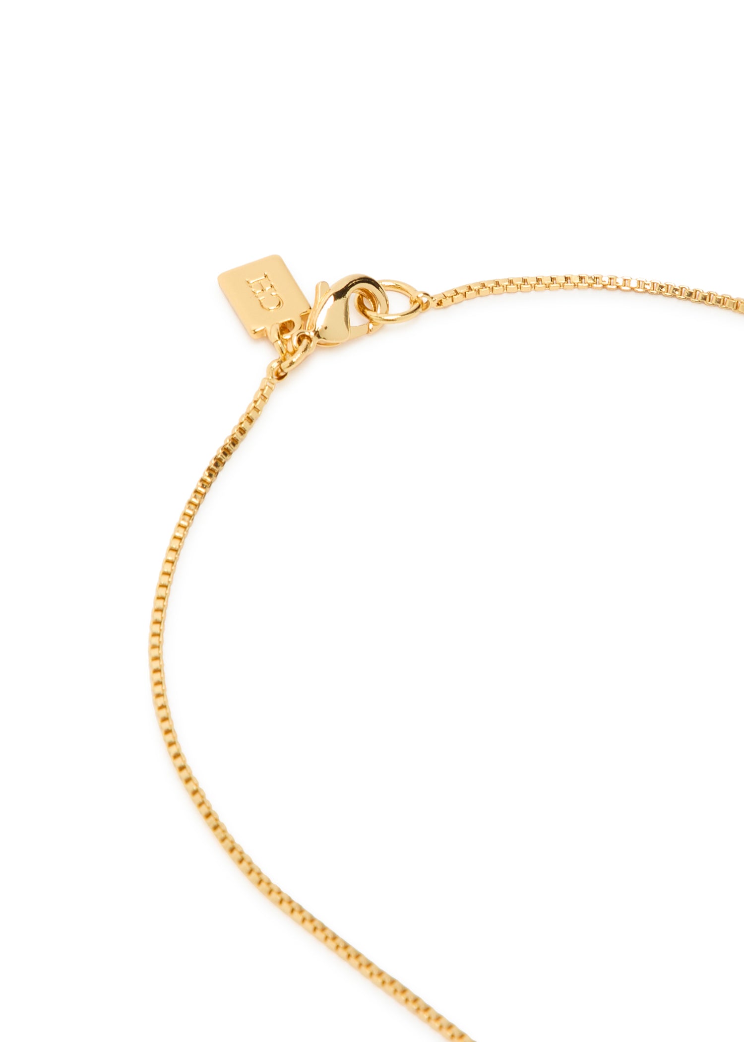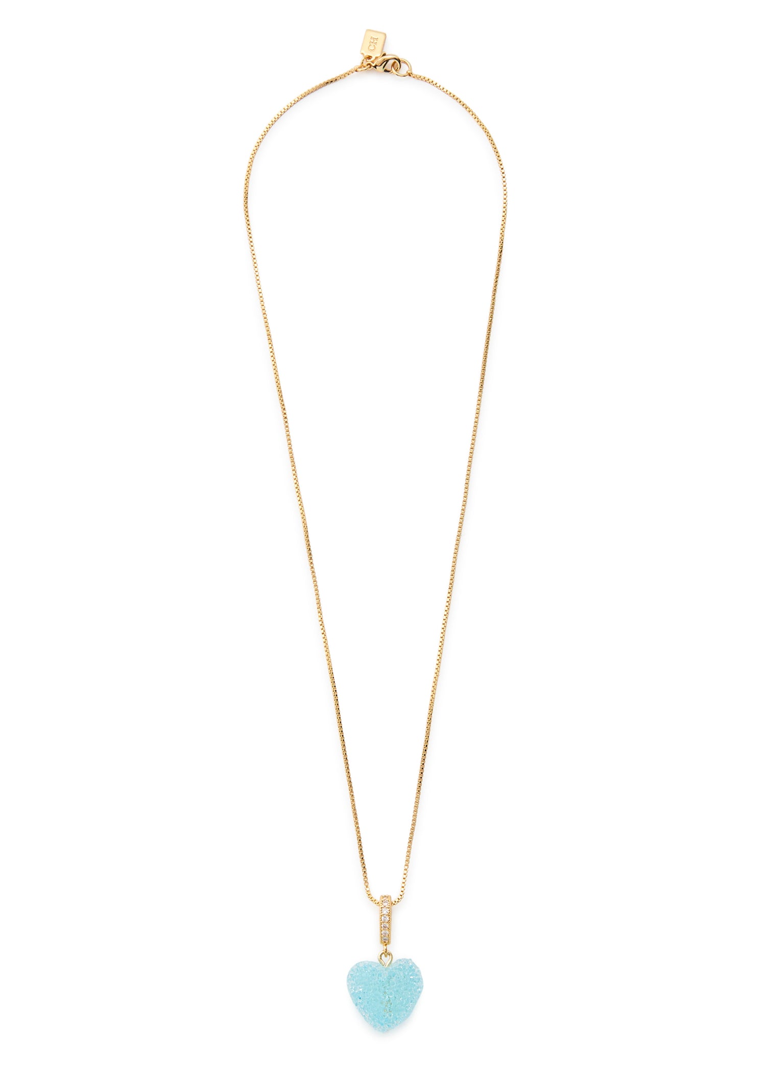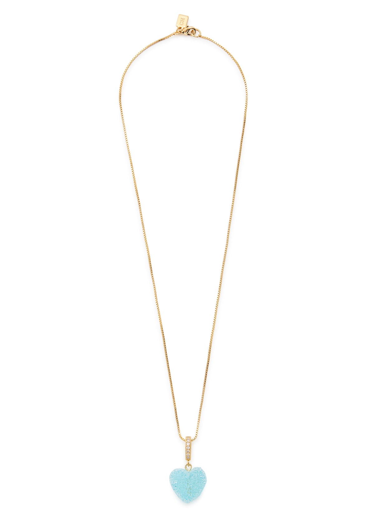This necklace is crafted from 18kt gold-plated brass with a textured resin heart pendant and a crystal-embellished connector. It has a lobster-clasp fastening and a length of 49.5cm.
