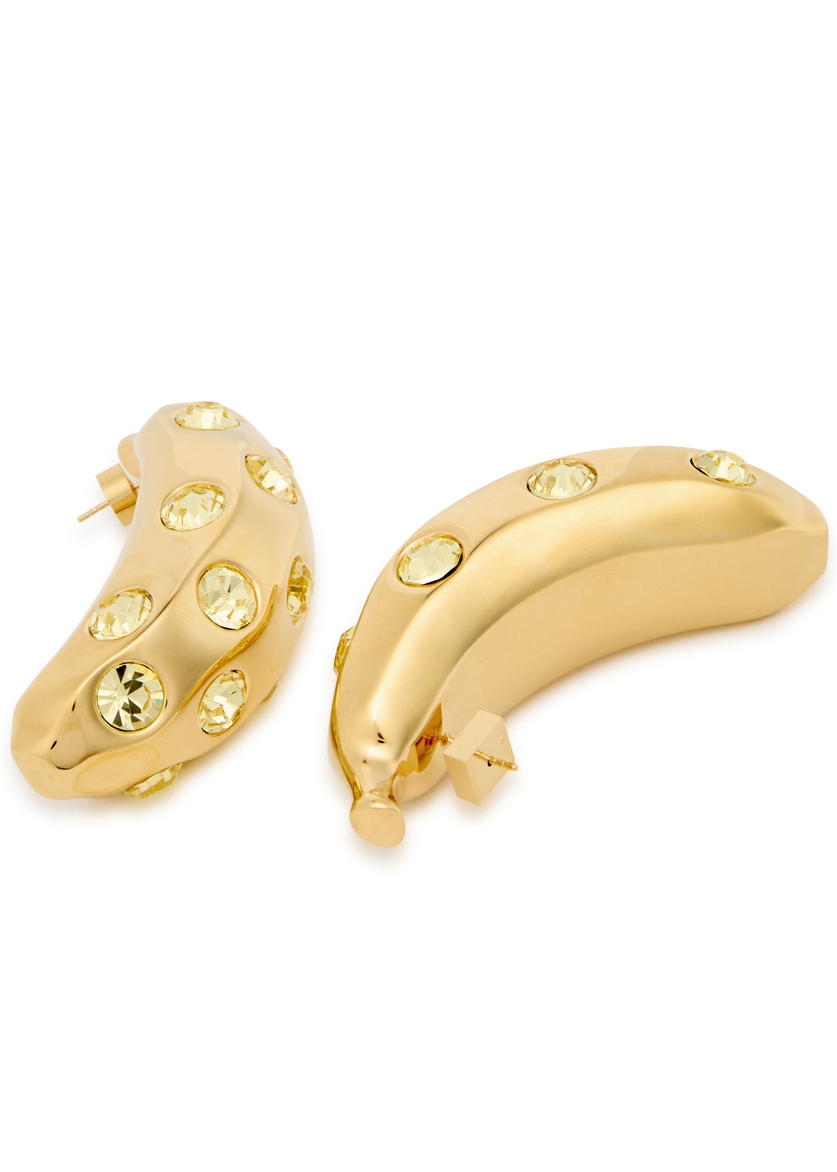These drop earrings are crafted from metal with a banana design and crystal embellishments. They have a post fastening and a 7.5cm drop.