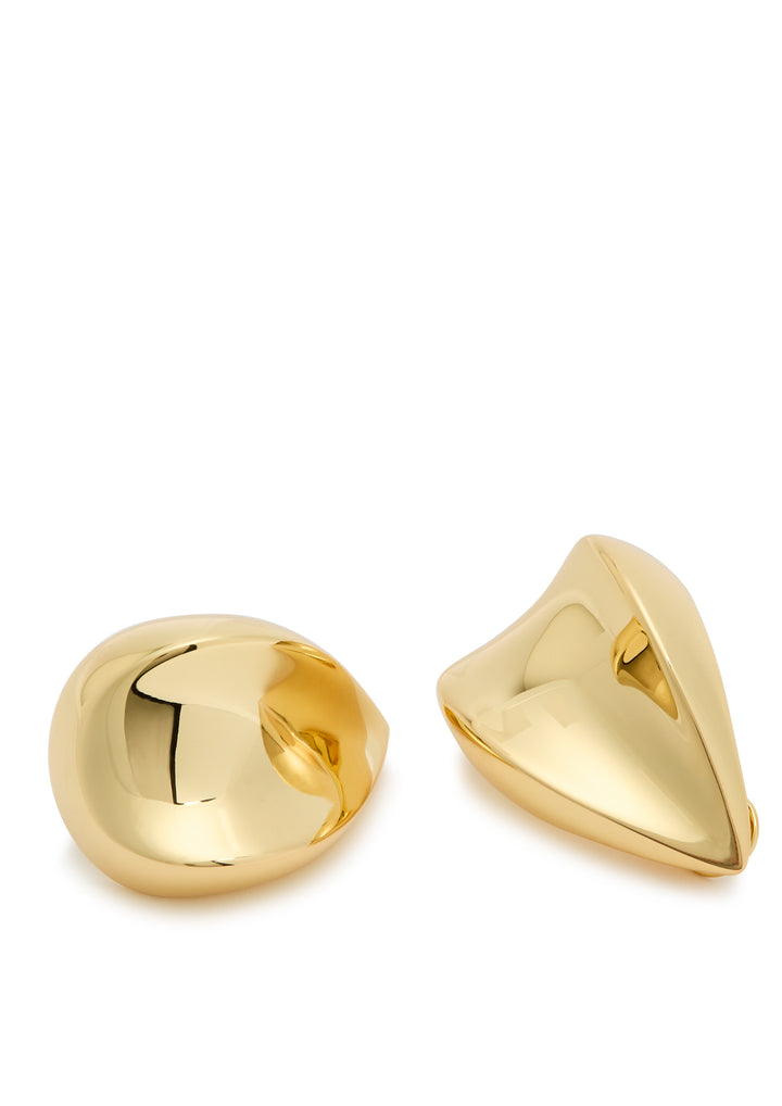 These drop earrings are crafted from 14kt gold-plated brass with a sculpted design. They have a post fastening and a 3.6cm drop.