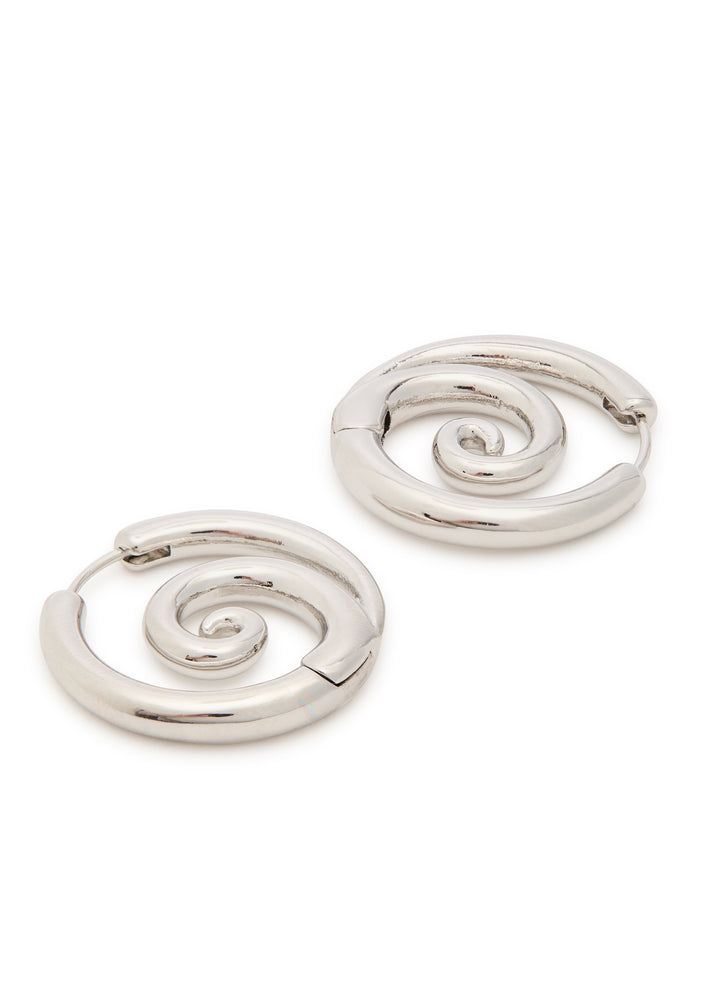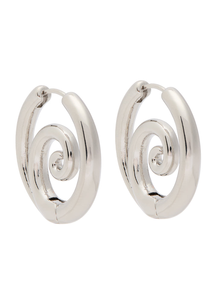 These hoop earrings are crafted from 22kt rhodium-plated sterling silver with a swirl design. They have a sleeper fastening and a 2.5cm drop.