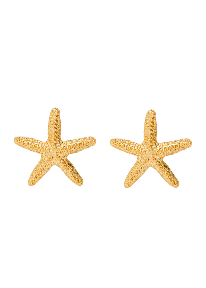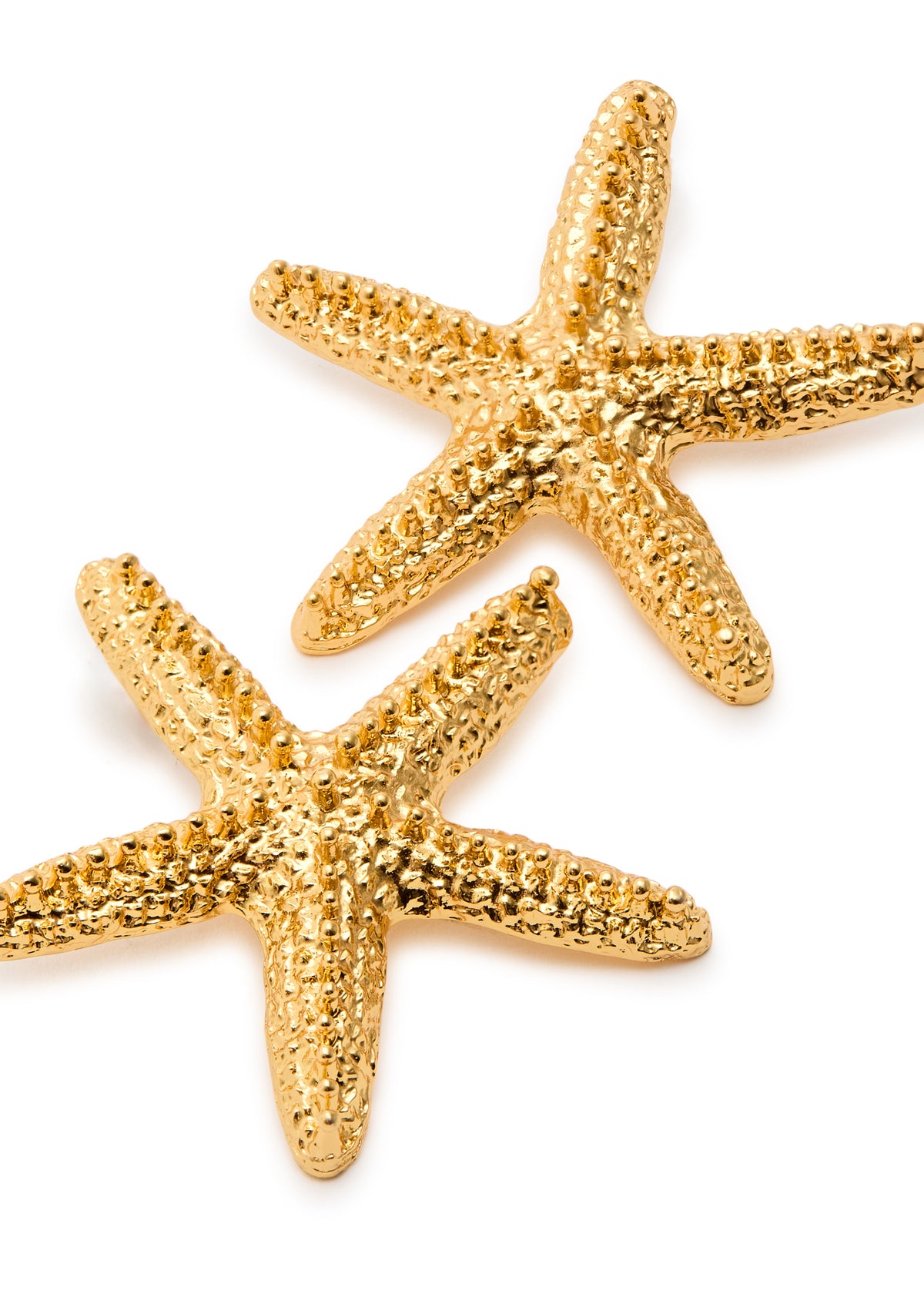 These drop earrings are crafted from 22kt gold-plated metal and feature a sculpted starfish design. They have a post fastening and measure 5.7cm x 6cm.
