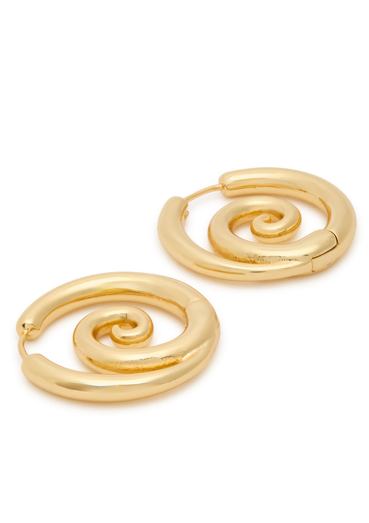 These hoop earrings are crafted from 22kt gold-plated metal with a swirl design. They have a sleeper fastening and a 2.5cm drop.