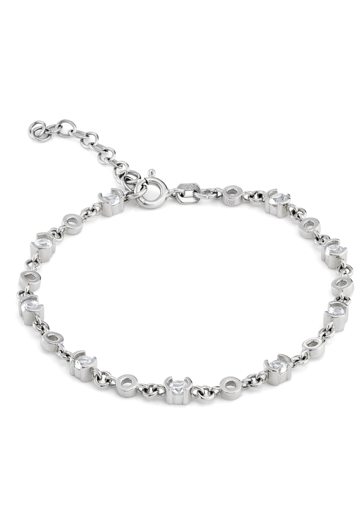 This bracelet is crafted from rhodium-plated recycled sterling silver with a chain design and crystal embellishments. The adjustable length is 16.5cm-19cm, and it is secured with an adjustable lobster-clasp fastening. It is presented in a designer-stamped box.