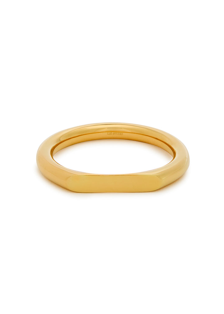 This The Dora 18kt gold-plated bracelet by Lié Studio is a bold, sculptural statement piece. The hand-finished bracelet features a wide, cuff-like design with a smooth, polished finish, creating a sense of powerful simplicity. It’s perfect for adding a touch of architectural elegance to your wrist, whether worn alone or stacked with other pieces. This bracelet symbolizes a confident, modern aesthetic.