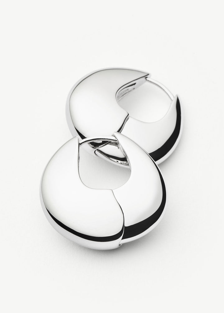 These Sculptural pebble small hoop earrings by Missoma are a sleek and modern take on a classic hoop. The hand-finished earrings feature a beautifully sculpted pebble design, creating a sense of smooth, organic elegance. These versatile hoops are perfect for adding a touch of understated artistry to your daily style, symbolizing a love for natural forms and refined design.