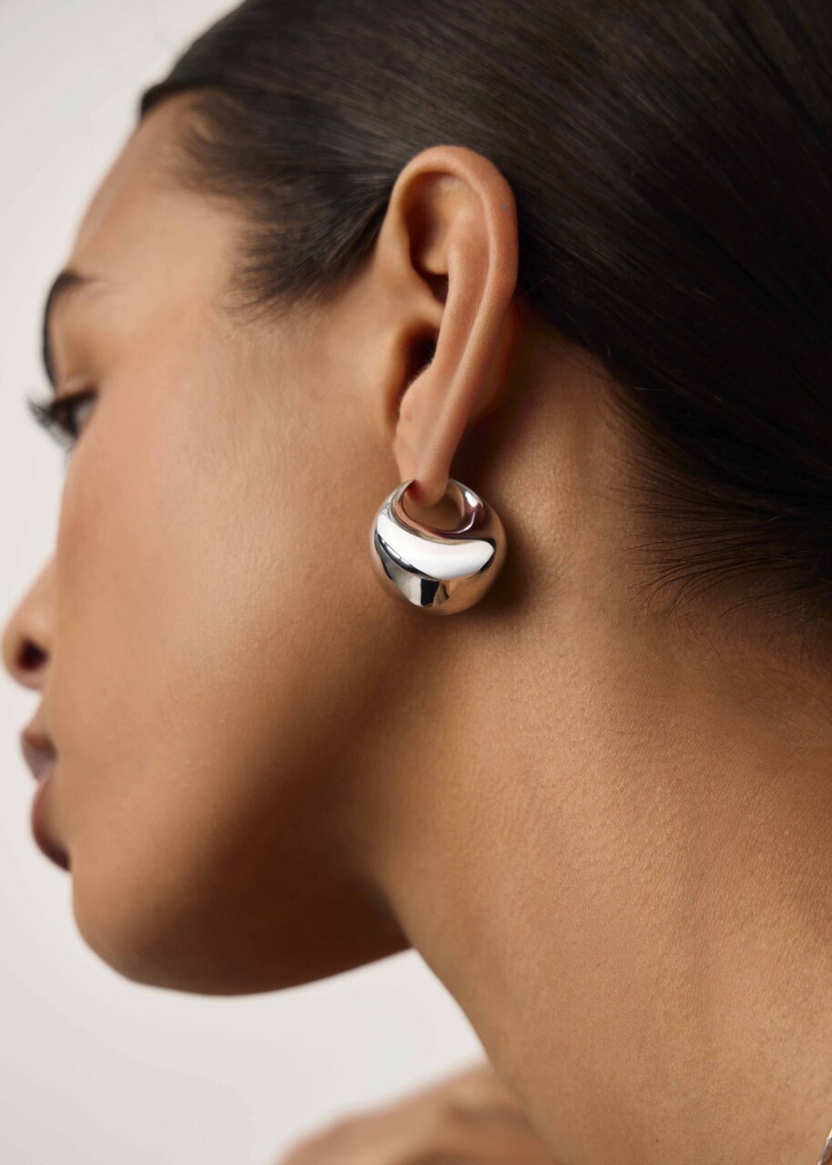 These Sculptural large silver-plated hoop earrings by Missoma are a bold and confident statement. The hand-finished large hoops feature a sculpted design that creates a sense of fluid, modern artistry. They are perfect for those who appreciate clean lines and architectural forms, adding a touch of sophisticated drama to any look. They symbolize a love for unique design and powerful simplicity.