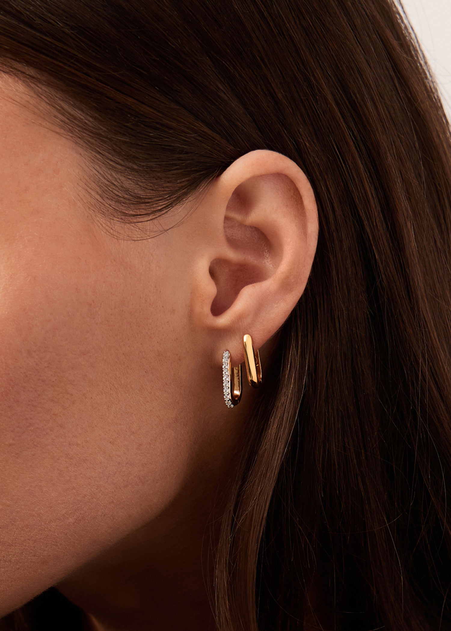 These Classic Ovate 18kt gold vermeil hoop earrings by Missoma are a timeless and elegant essential. The hand-finished hoops have a unique ovate shape that creates a subtle, sophisticated silhouette. These versatile earrings are perfect for adding a touch of classic luxury to your daily style, whether for a day at the office or a special evening out. They symbolize a love for timeless forms and refined beauty.