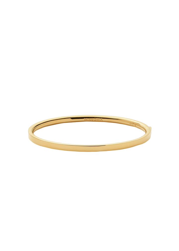 This Classic hinged 18kt gold vermeil bangle by Missoma is a timeless and elegant essential. The bangle has a clean, classic design with a smooth, polished finish, perfect for adding a touch of refined luxury to your wrist. This versatile piece is great for stacking or wearing on its own for a sophisticated look. It symbolizes a love for timeless design and simple, enduring elegance.