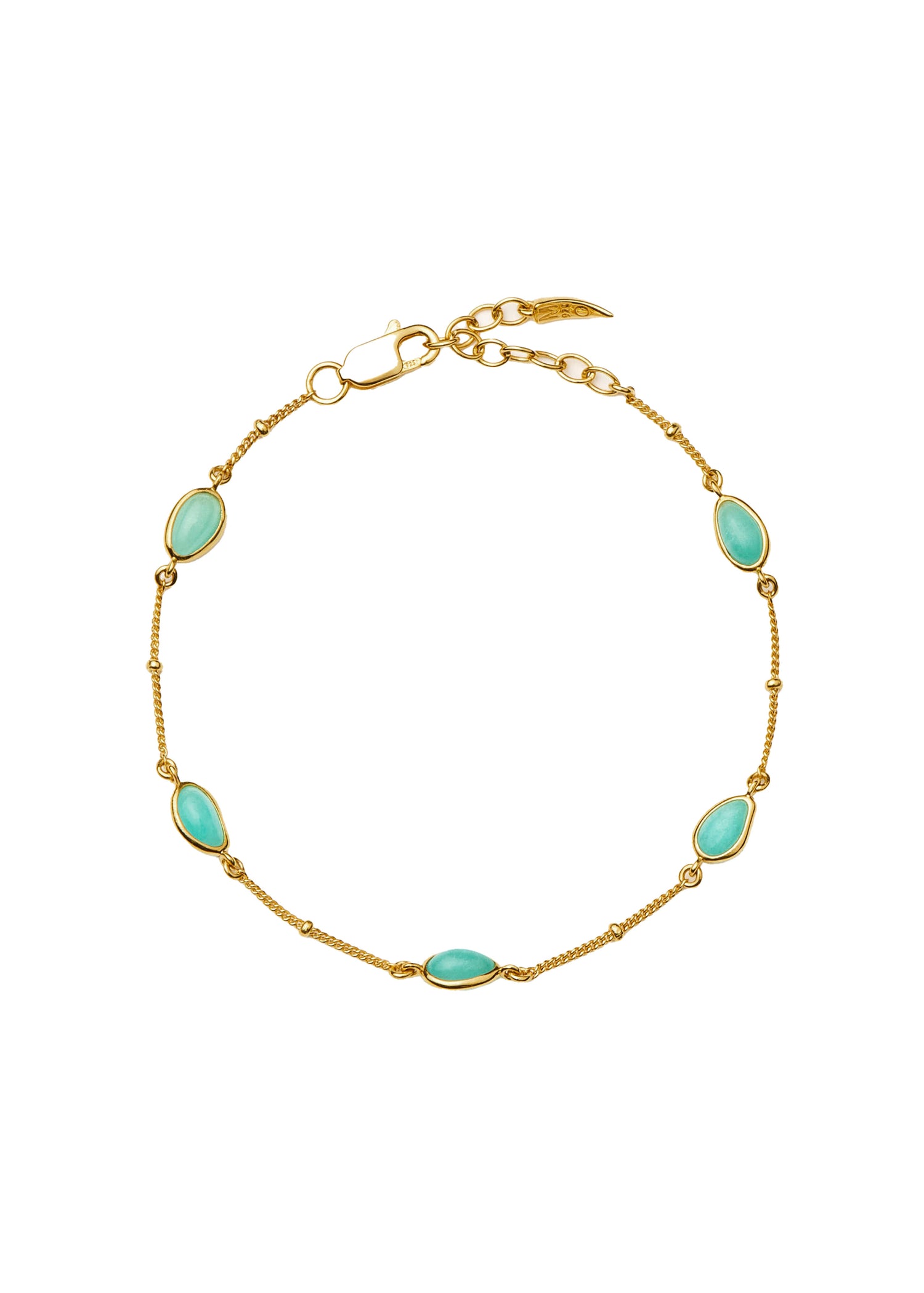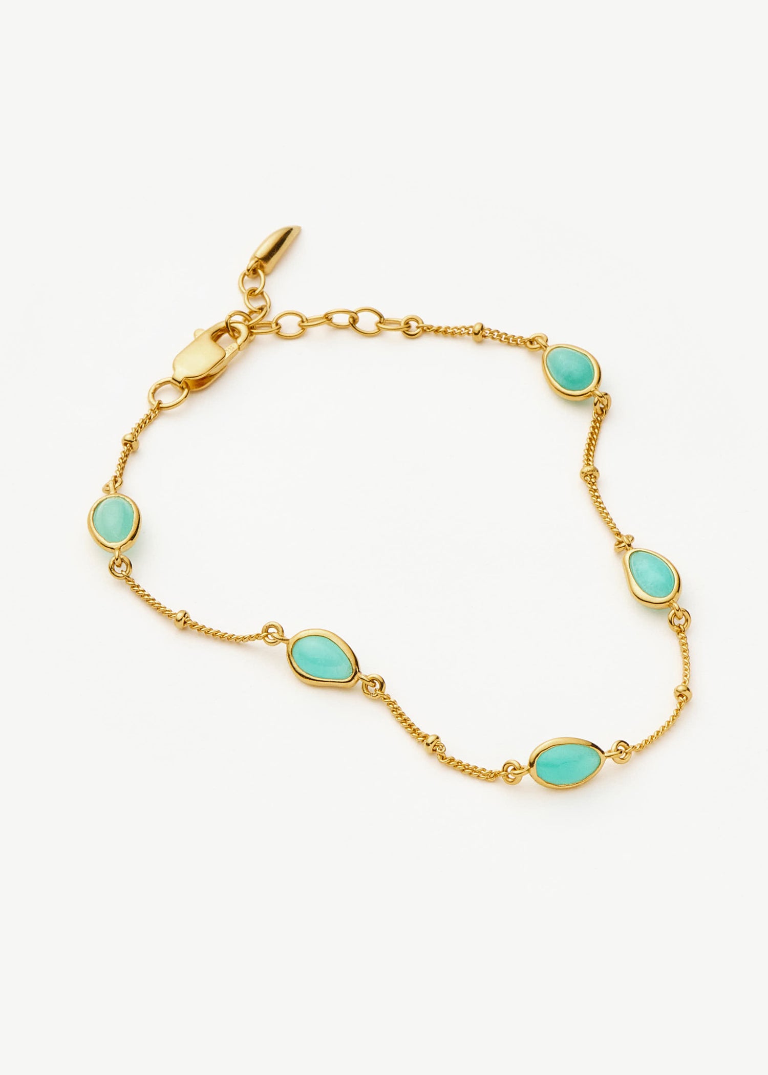 This bracelet is crafted from 18ct gold vermeil with malachite gemstones. The charm dimensions are 0.74cm x 0.49cm. It is available in sizes small (16cm - 18.5cm) and medium (19cm - 21.5cm) with an adjustable lobster-clasp fastening.