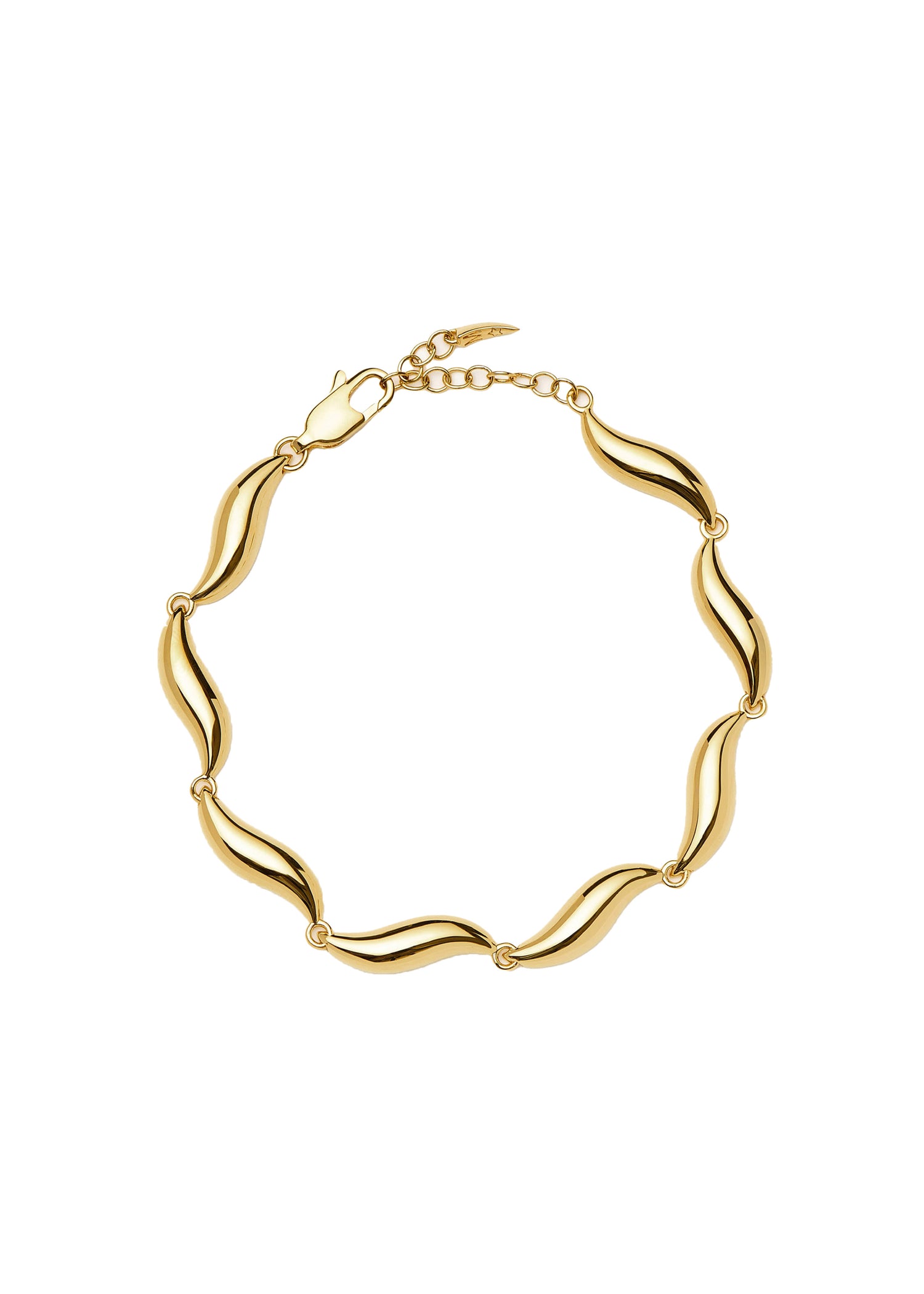 This bracelet is crafted from 18kt gold-plated brass with an S chain design. It is available in sizes small (16cm - 18.5cm) and medium (19cm - 21.5cm) with an adjustable clasp fastening.
