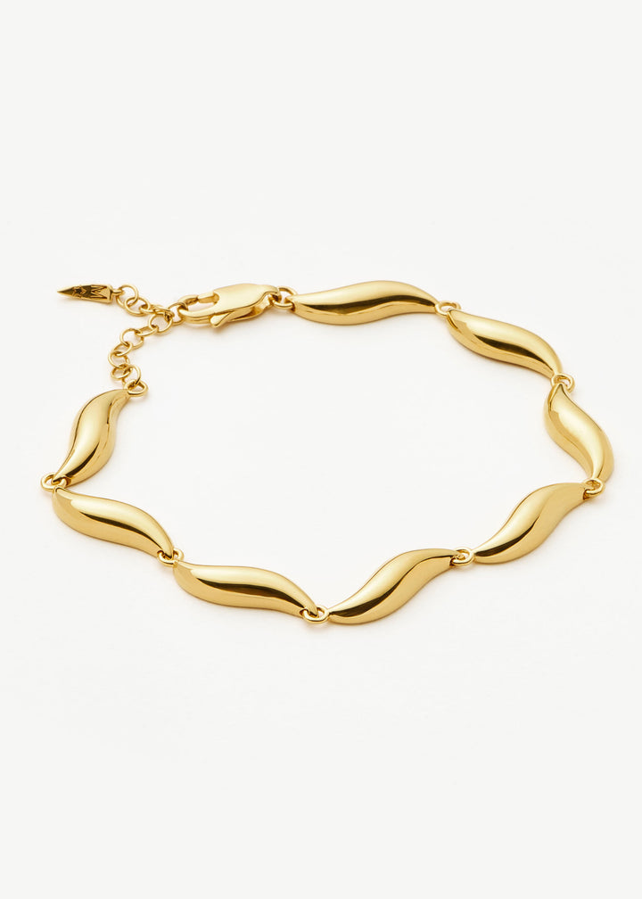 This Savi Signature 18kt gold-plated bracelet by Missoma is a sleek and contemporary chain-link piece. The unique "S" chain design creates a subtle sense of movement and modern elegance. This versatile bracelet is perfect for adding a touch of refined sophistication to your wrist, whether worn alone or as part of a curated stack. It symbolizes a love for clean lines and modern design.