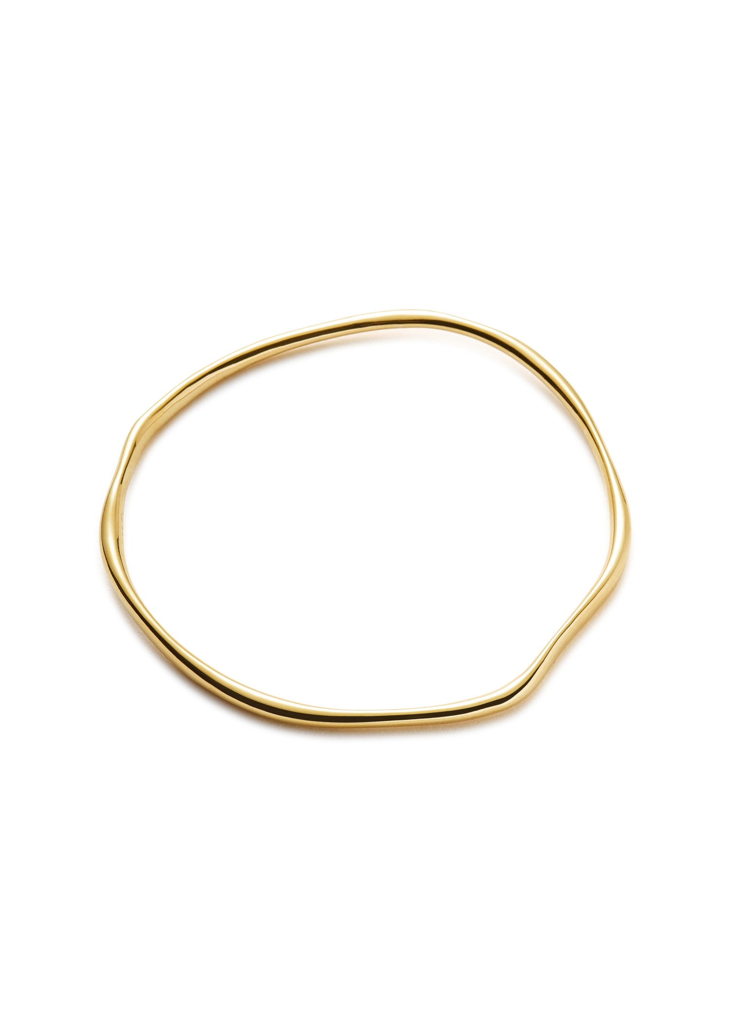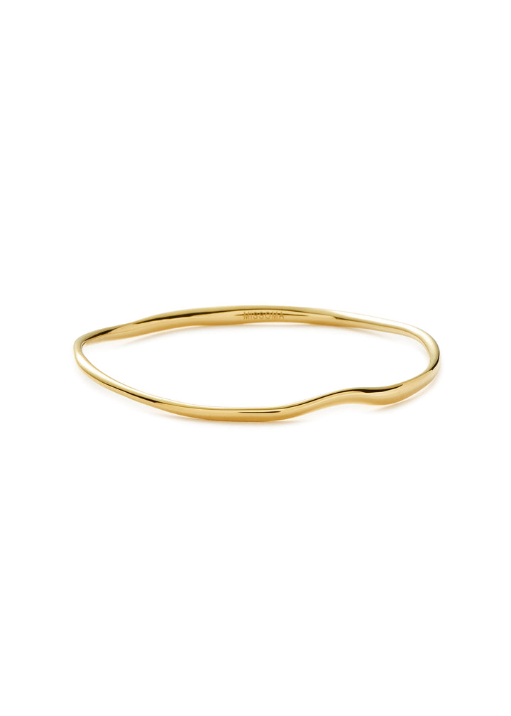 This Molten Ripple 18kt gold vermeil bangle by Missoma is a luxurious and artistic statement. The bangle features a beautiful ripple design, creating a sense of fluid, molten elegance. Its brilliant 18kt gold vermeil finish gives it a rich and opulent feel, perfect for elevating any look. This piece symbolizes a love for organic, modern design and refined beauty.