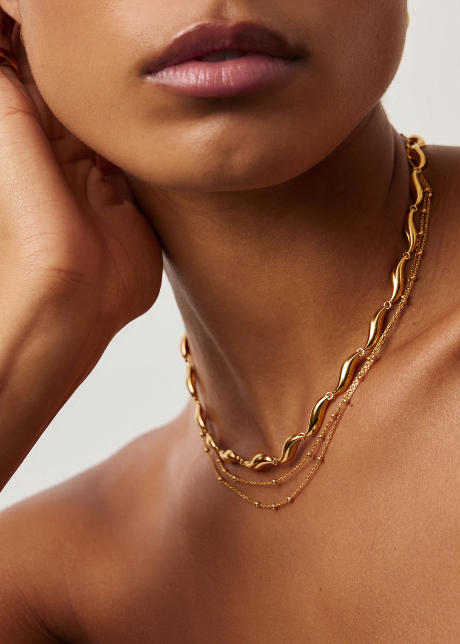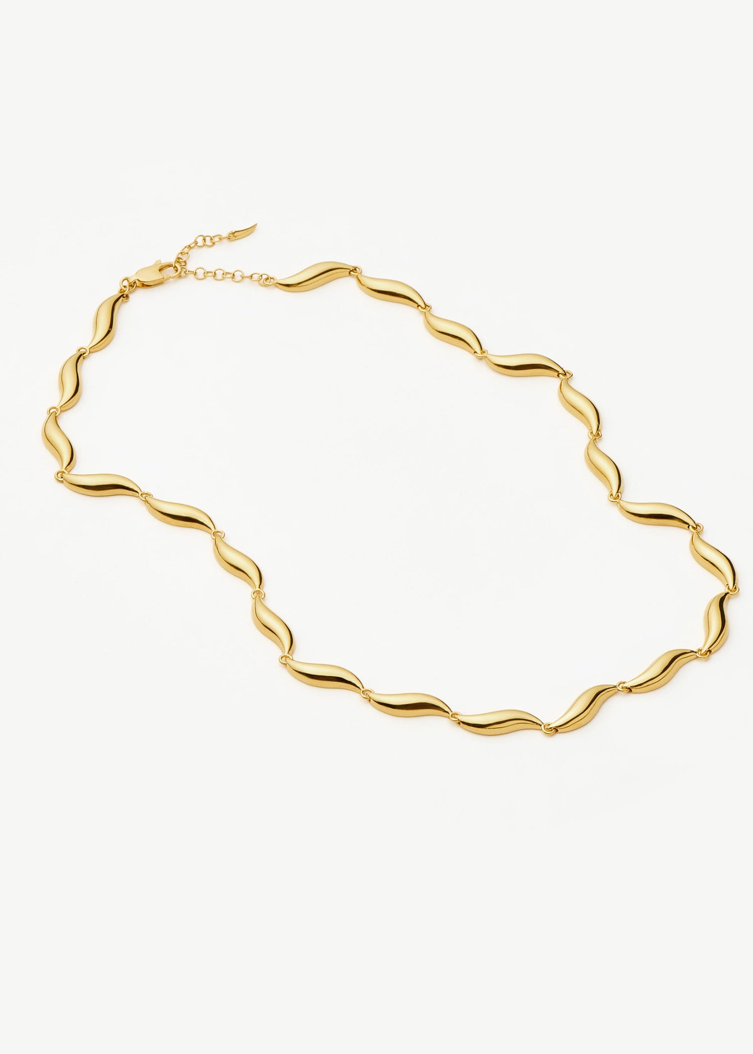 This Savi 18kt gold-plated necklace by Missoma X SAVISLOOK is a sleek and contemporary piece. The unique "S" chain design creates a subtle sense of movement and modern elegance. This versatile necklace is perfect for adding a touch of refined sophistication to your neckline, whether worn alone or as part of a layered look. It symbolizes a love for clean lines and modern design.