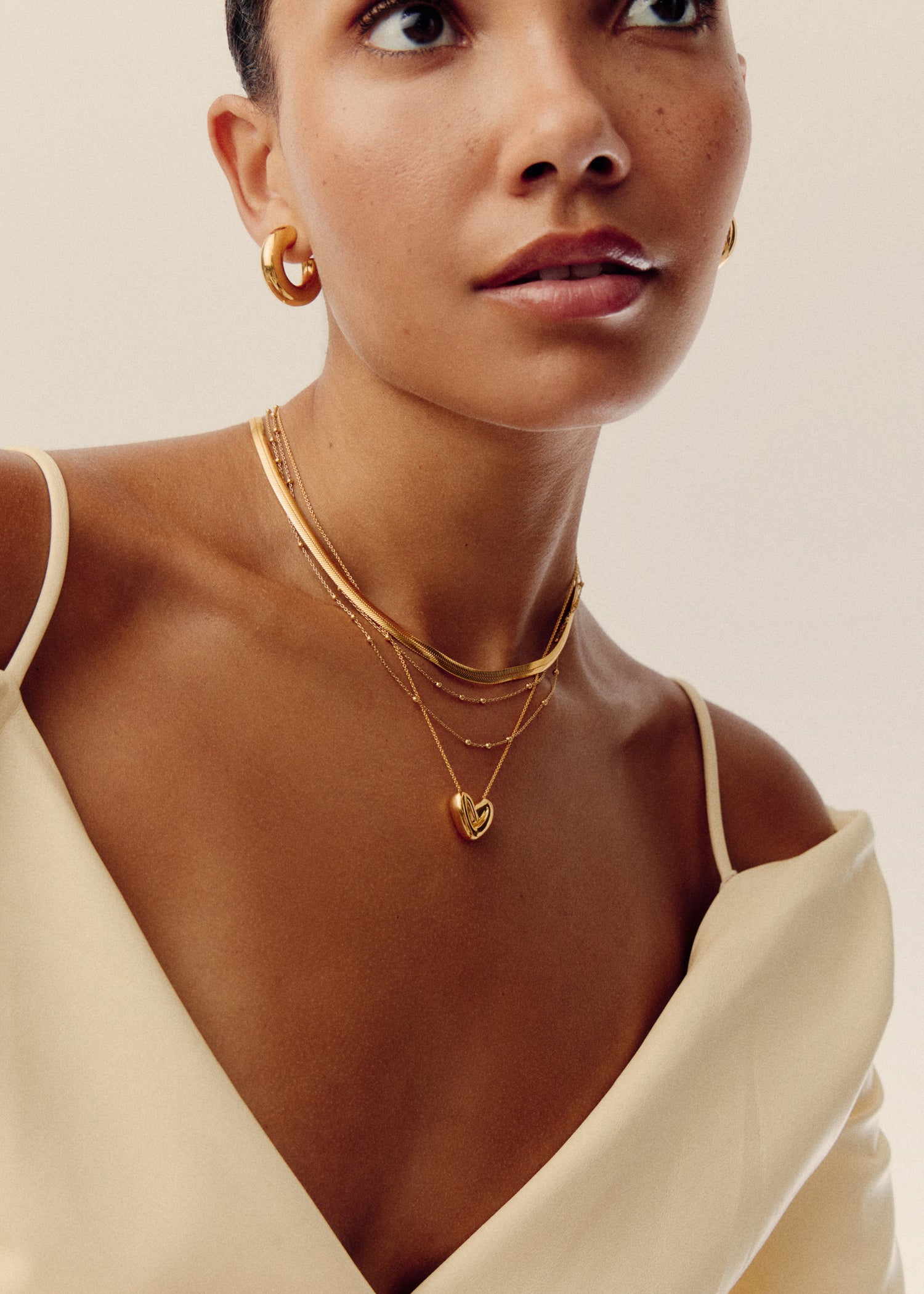 This Puffy Heart 18kt gold-plated necklace by Missoma is a charming and romantic accessory. The necklace features a beautifully sculpted puffy heart pendant, which creates a sense of joyful, whimsical elegance. This piece is a perfect expression of love and is a versatile accessory for adding a touch of sweet sentiment and modern luxury to your style.