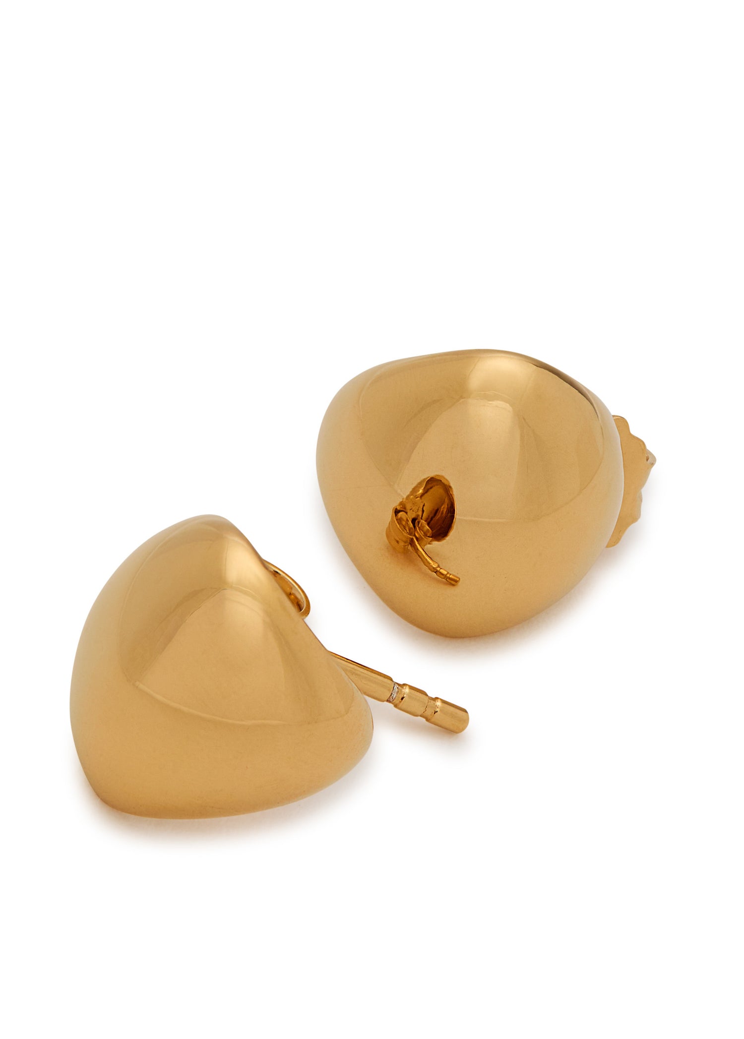 These earrings are crafted from 14kt recycled gold vermeil with a sculpted design. The drop is 1cm, and they are secured with a butterfly fastening. They are presented in a designer-stamped pouch.