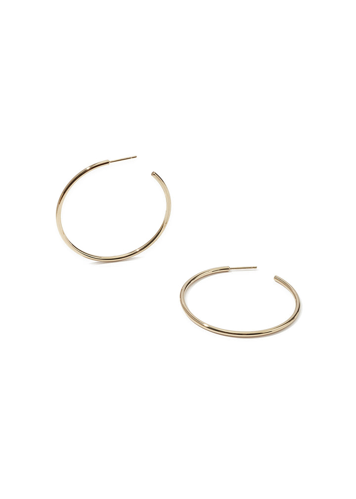 These Everyday 14kt gold vermeil hoop earrings by Otiumberg are a timeless and elegant essential. The clean, classic design of the hoops makes them a versatile piece for any occasion. Their generous size is perfect for adding a touch of sophisticated style without being too dramatic. These earrings symbolize a love for enduring, refined beauty and can be worn as a daily staple.
